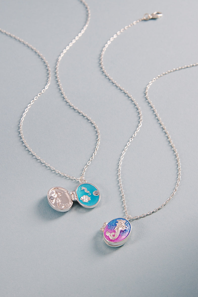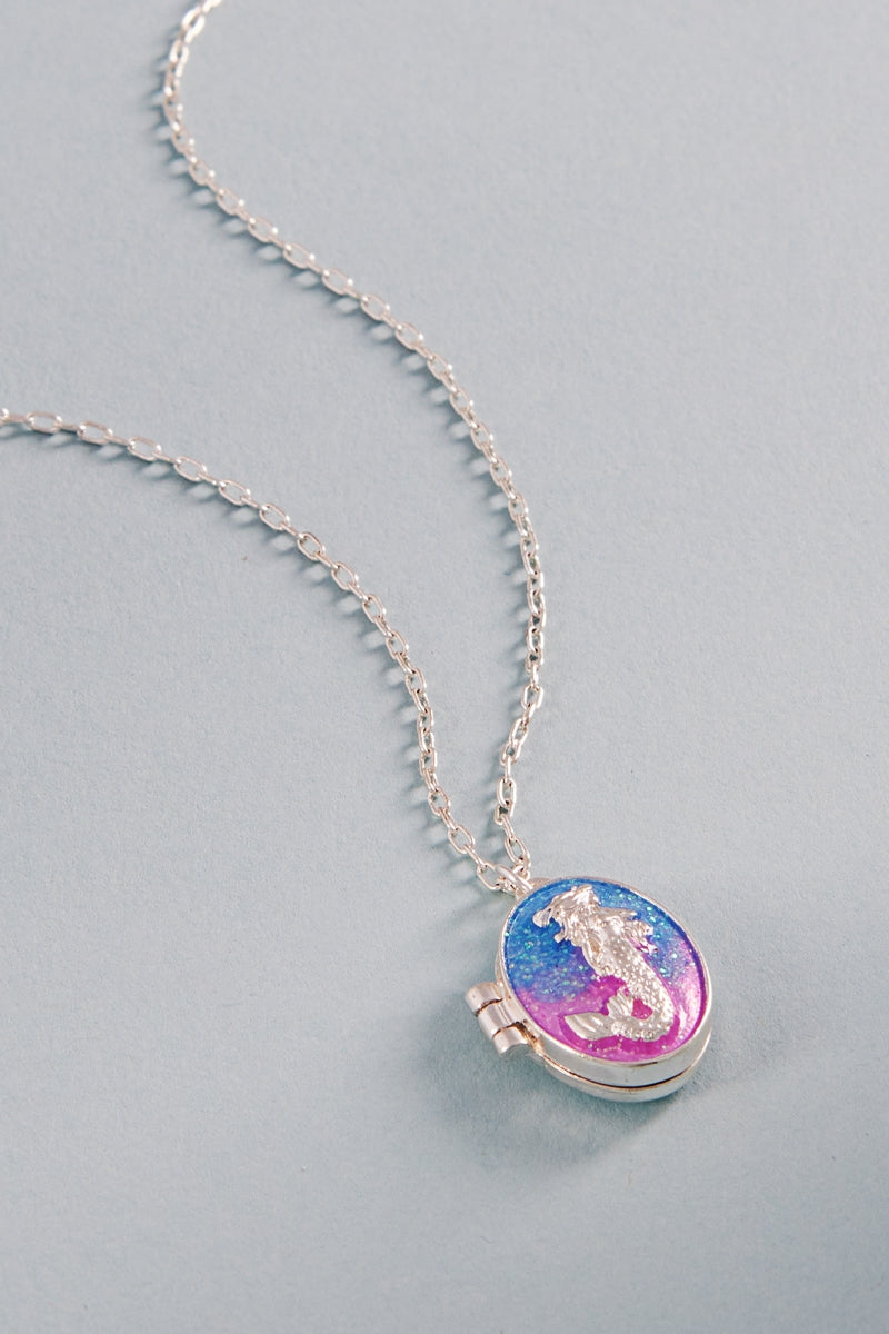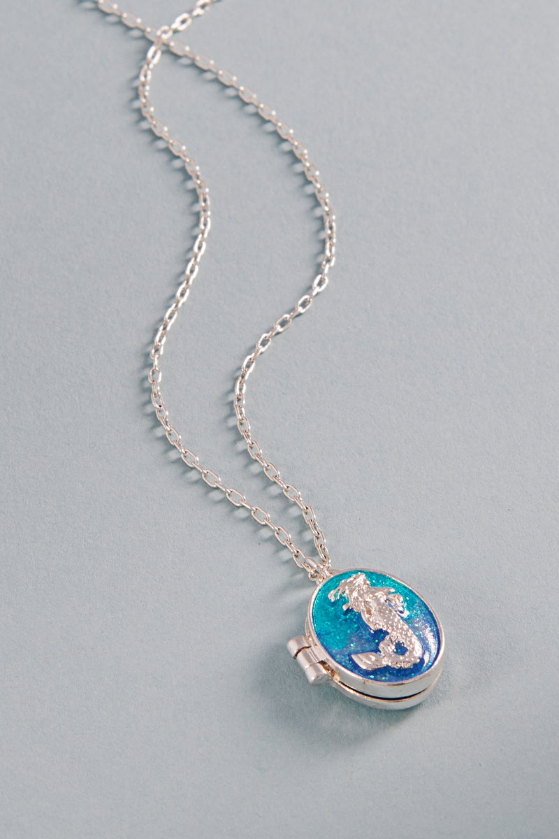 Mermaid Enameled Locket Summer Sealife Necklace