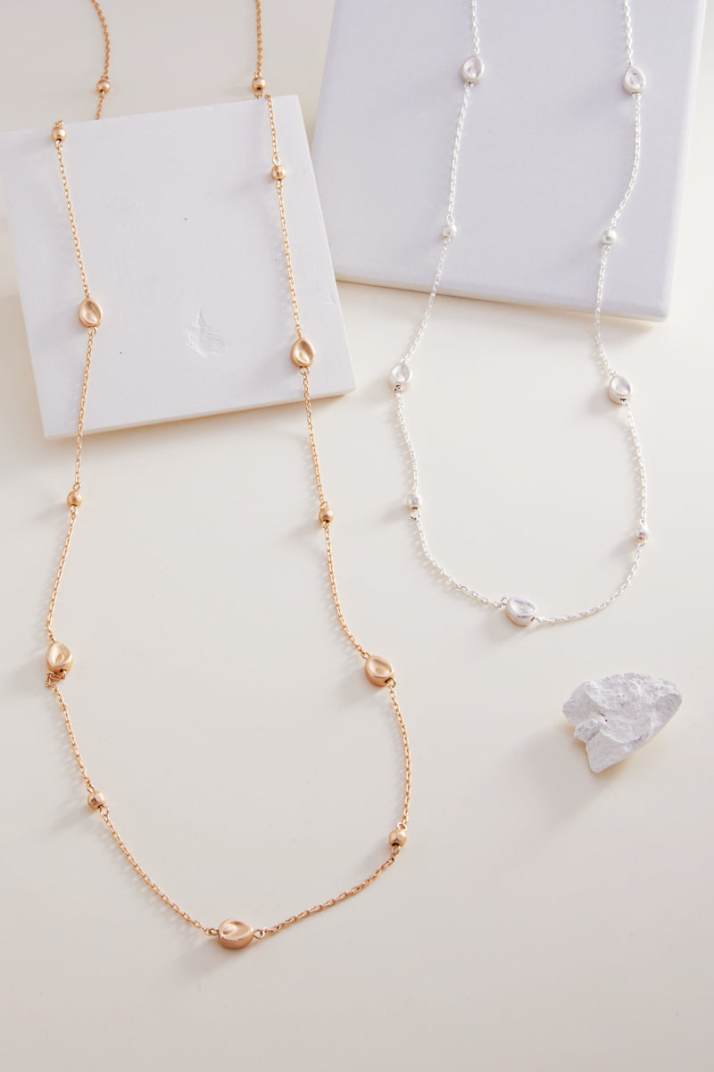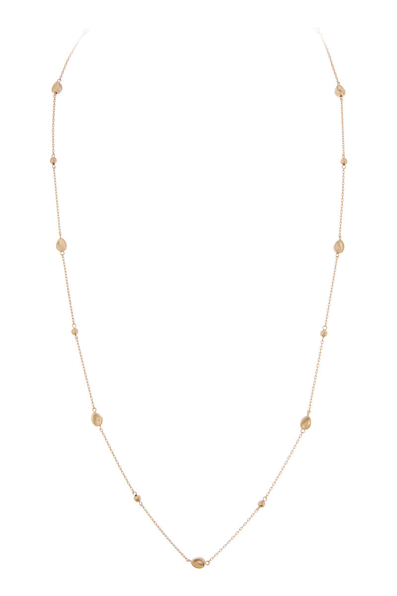 Enhance your style with our 32 inch metal nugget stational long necklace. Made with high-quality materials, this necklace adds a touch of elegance to any outfit.
