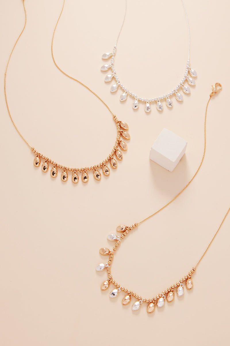 This necklace features a unique, organic shape and is made from high-quality metal. Its 16 and 18 inch length options make it a versatile choice for any outfit.