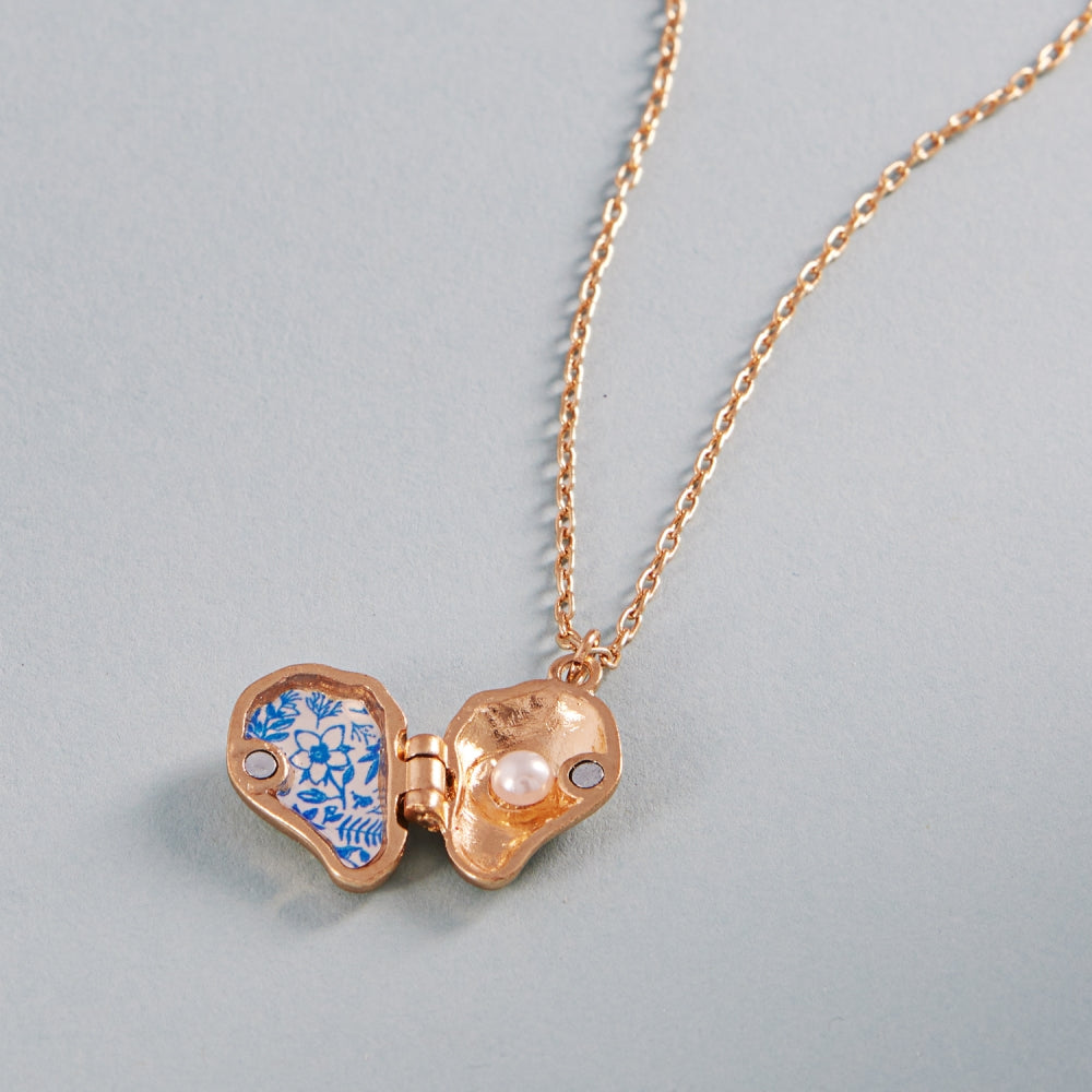 Bring seaside elegance to your look with this oyster shaped locket necklace. The 17 inch short chain holds a delicate sealife-inspired charm that captures the carefree beauty of summer. Perfect for layering or wearing solo, it adds a soft coastal touch to any outfit.