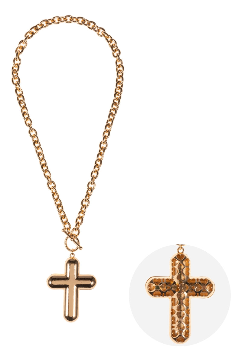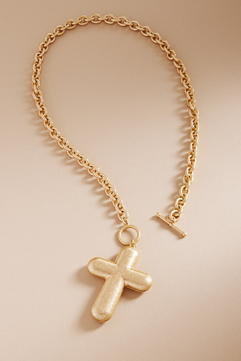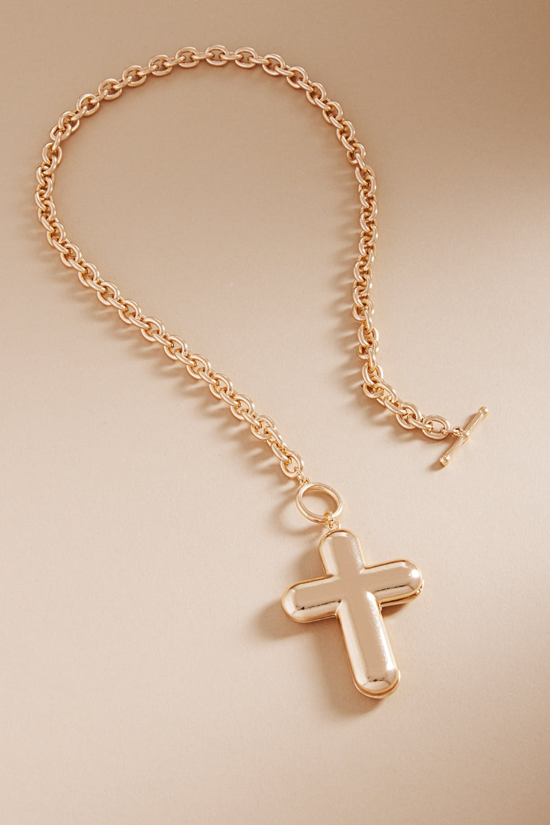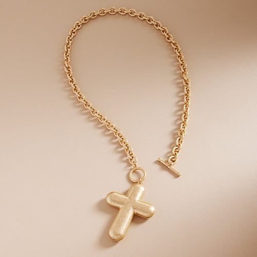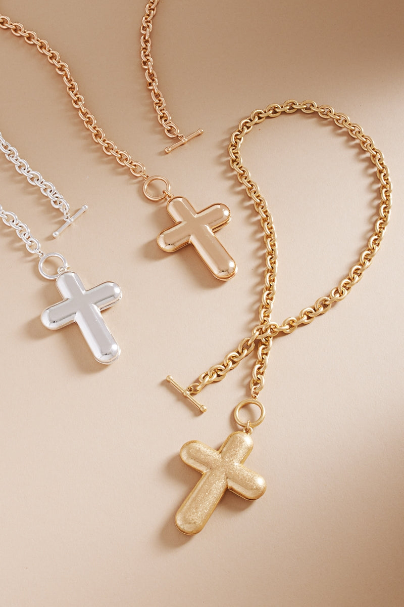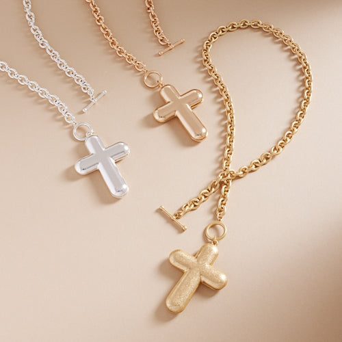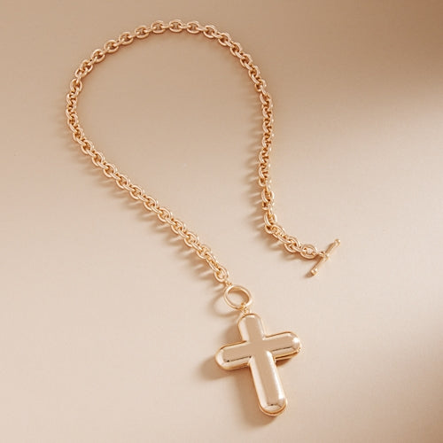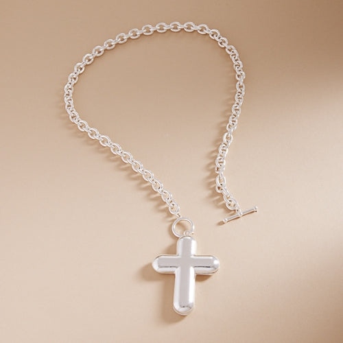 Puffy Cross Metal Toggle Clasp Short Necklace