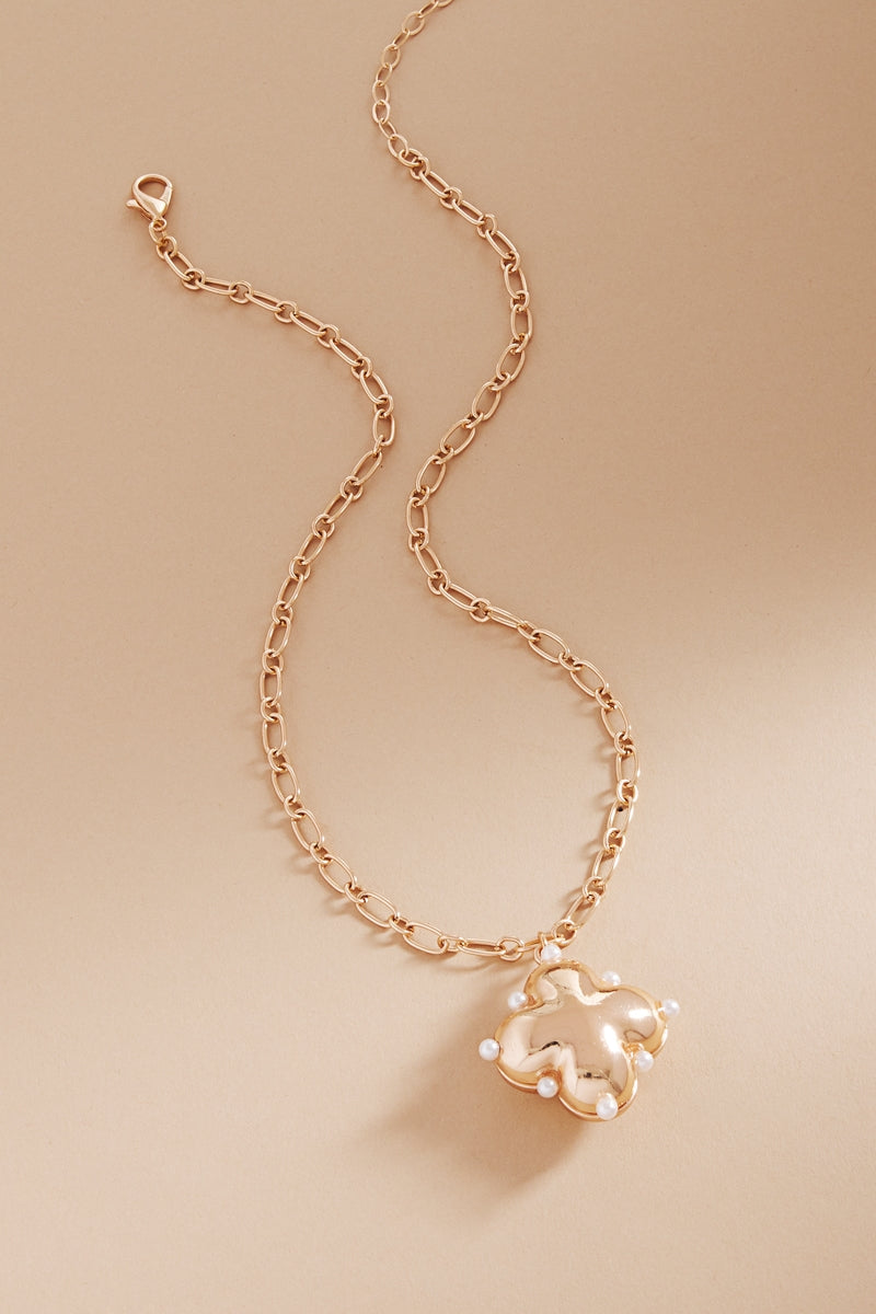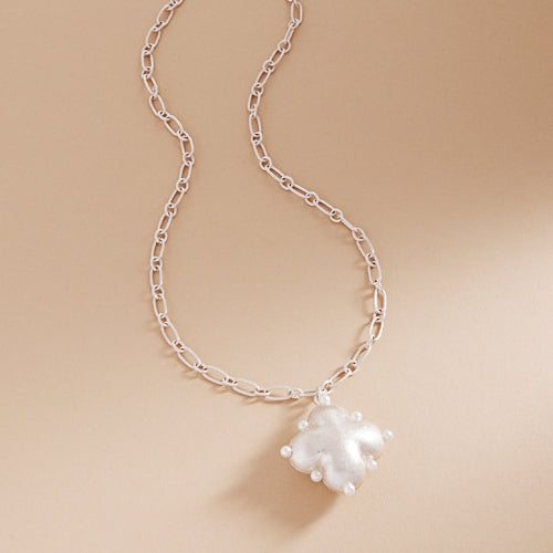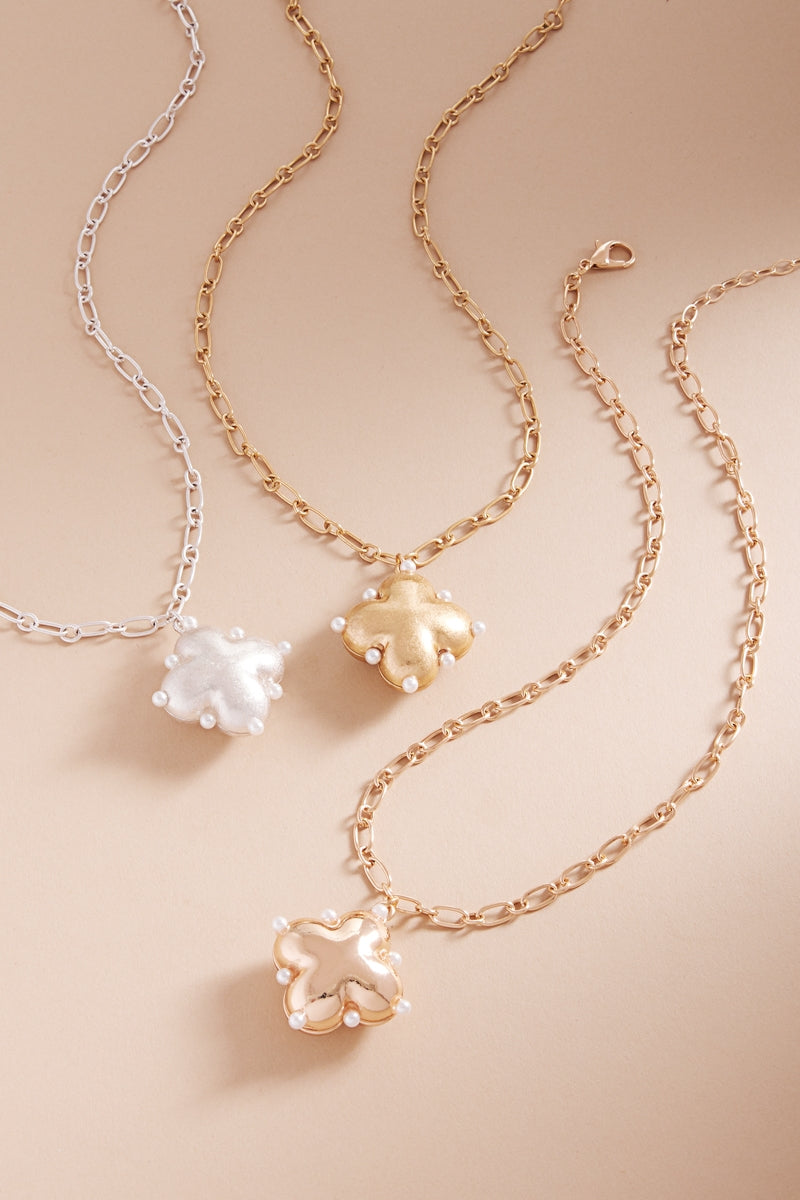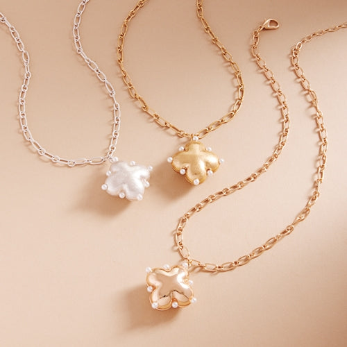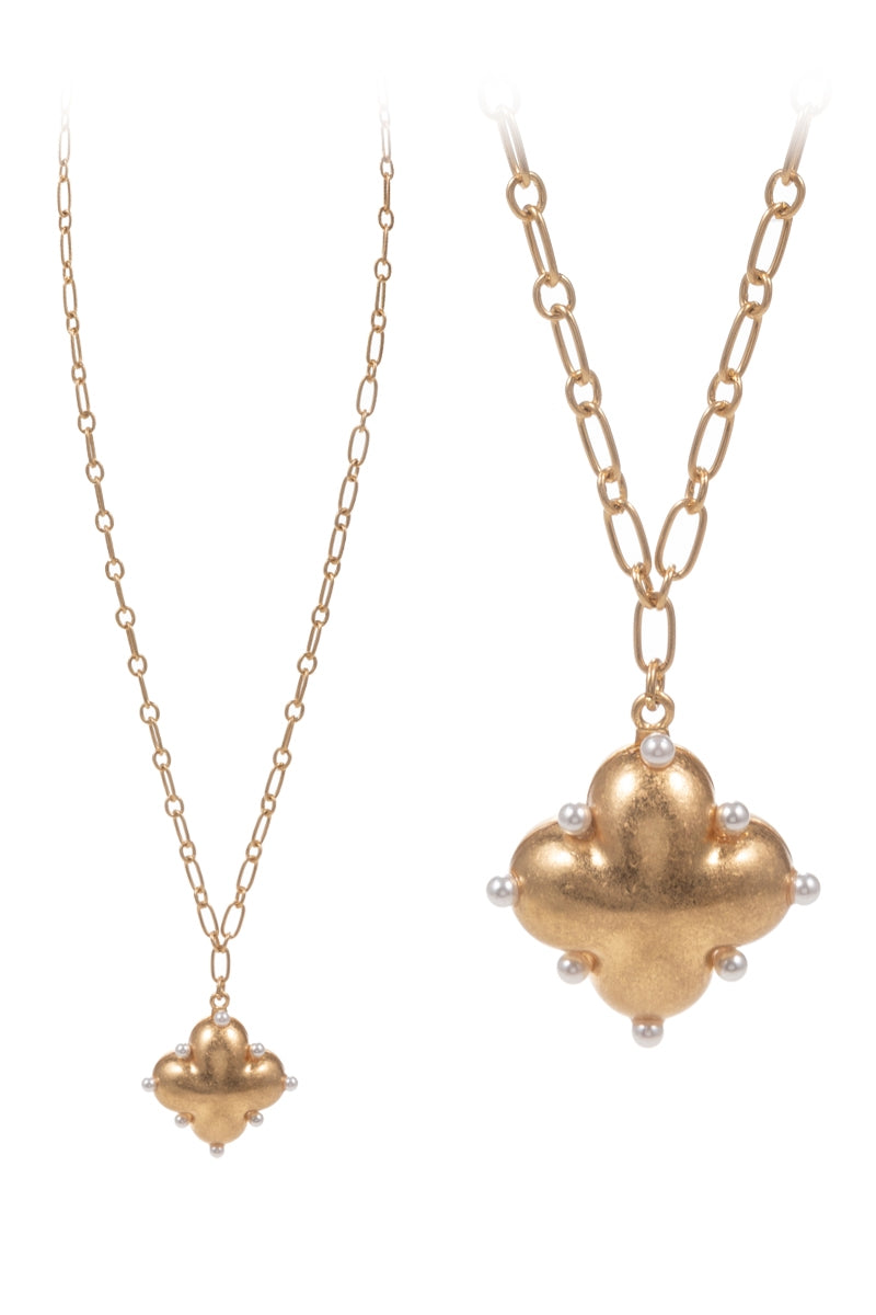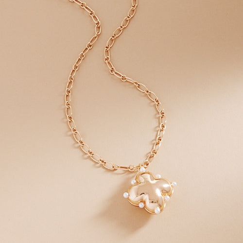 Quatrefoil Puffy With Pearl Rim Detail Short Necklace