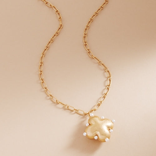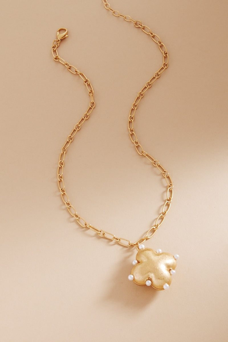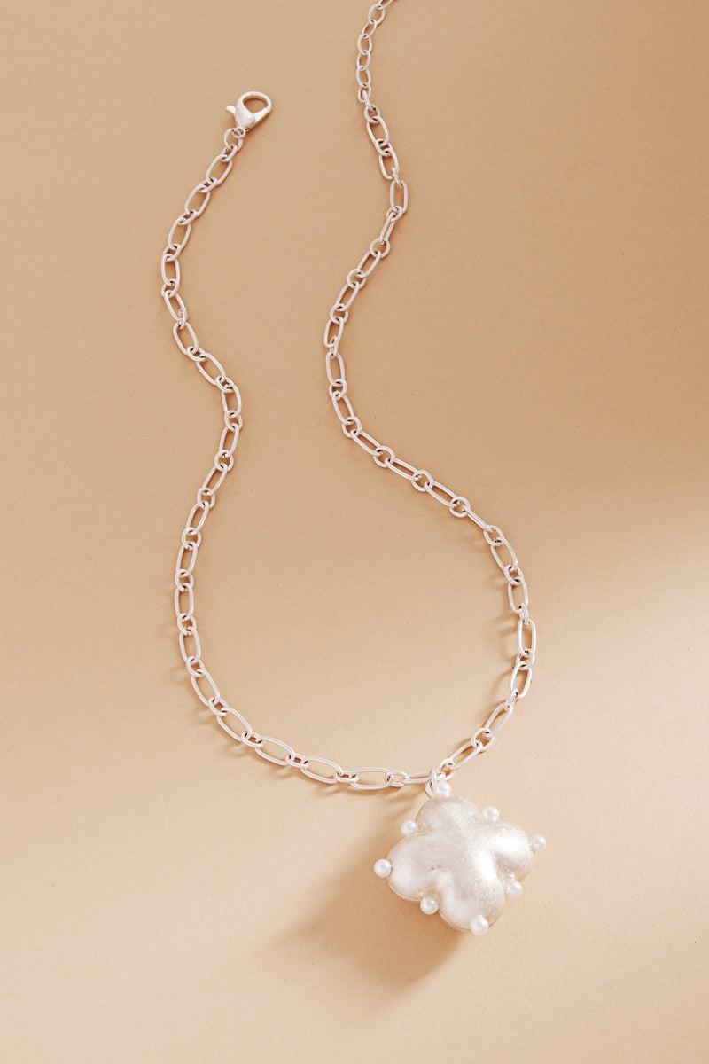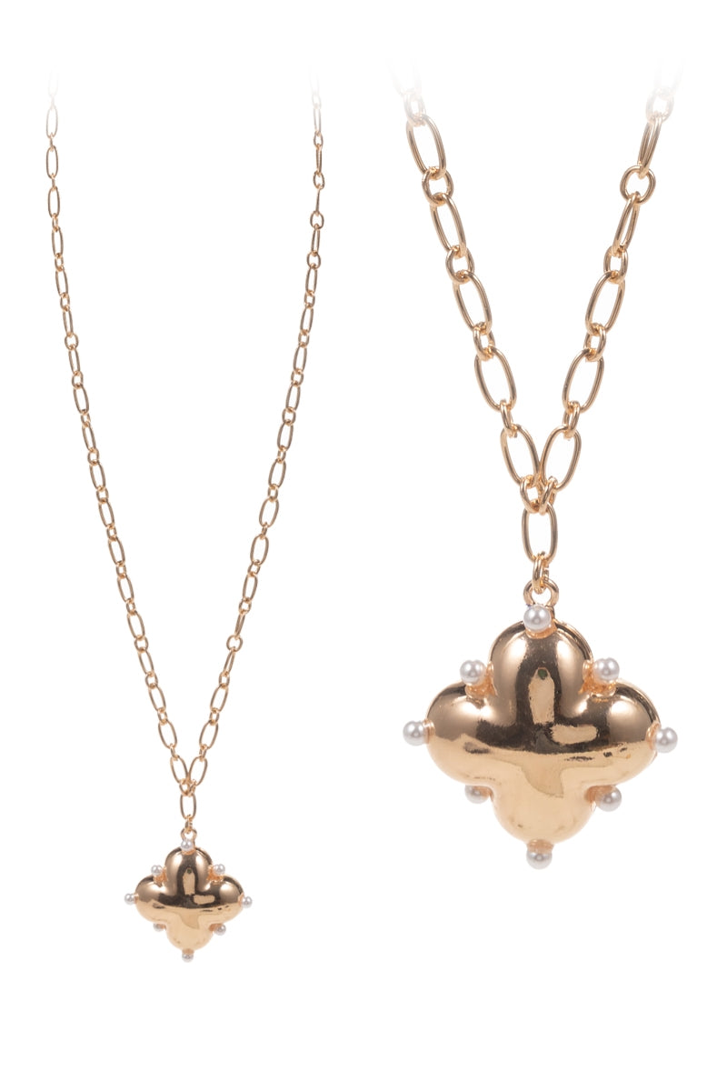 Quatrefoil Puffy With Pearl Rim Detail Short Necklace