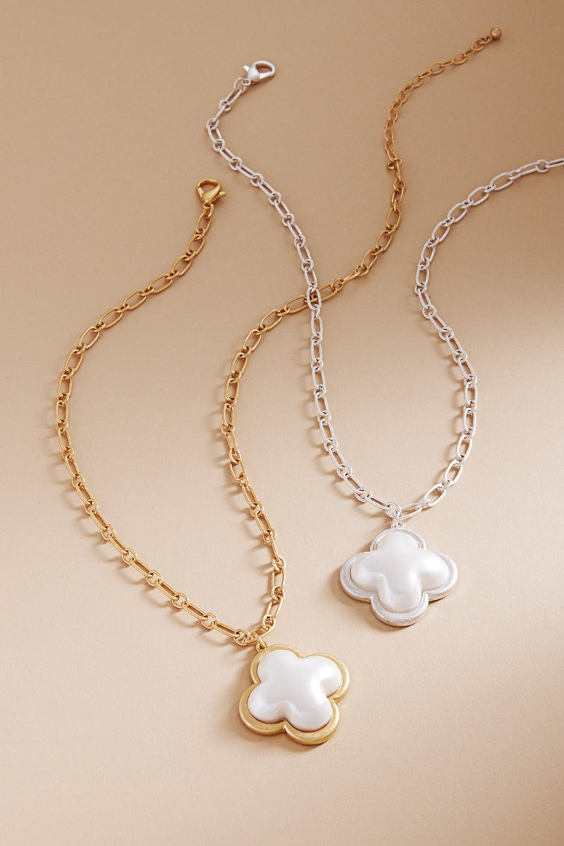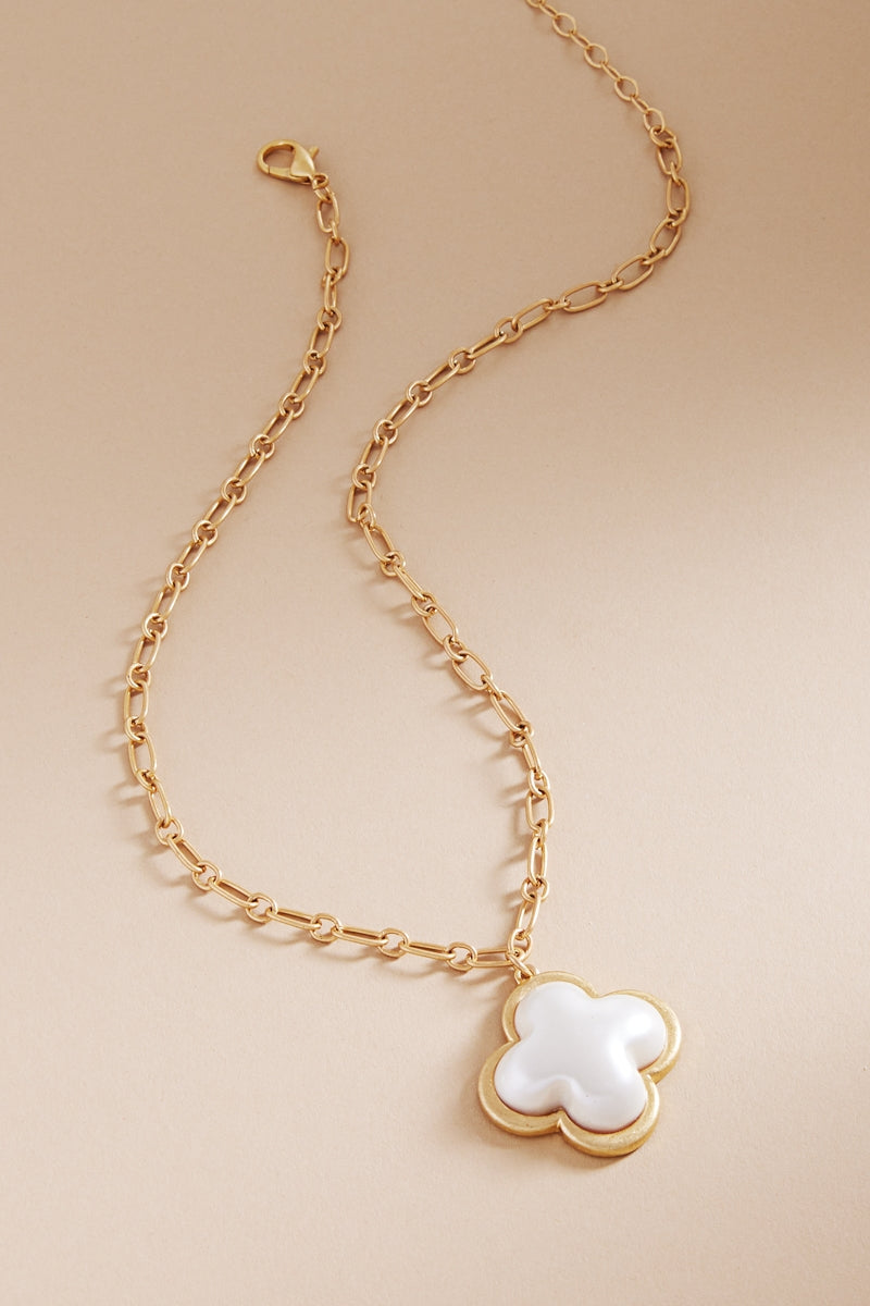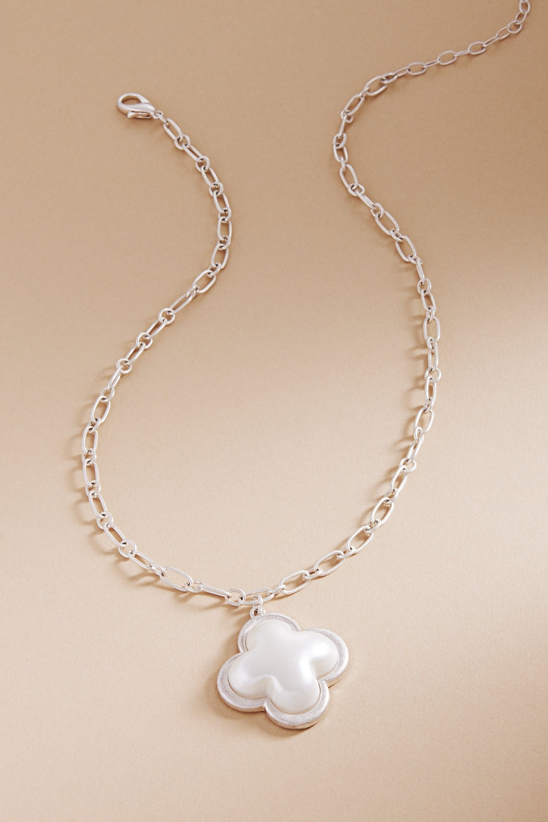 Quatrefoil Shaped Pearl Cabochon Short Necklace