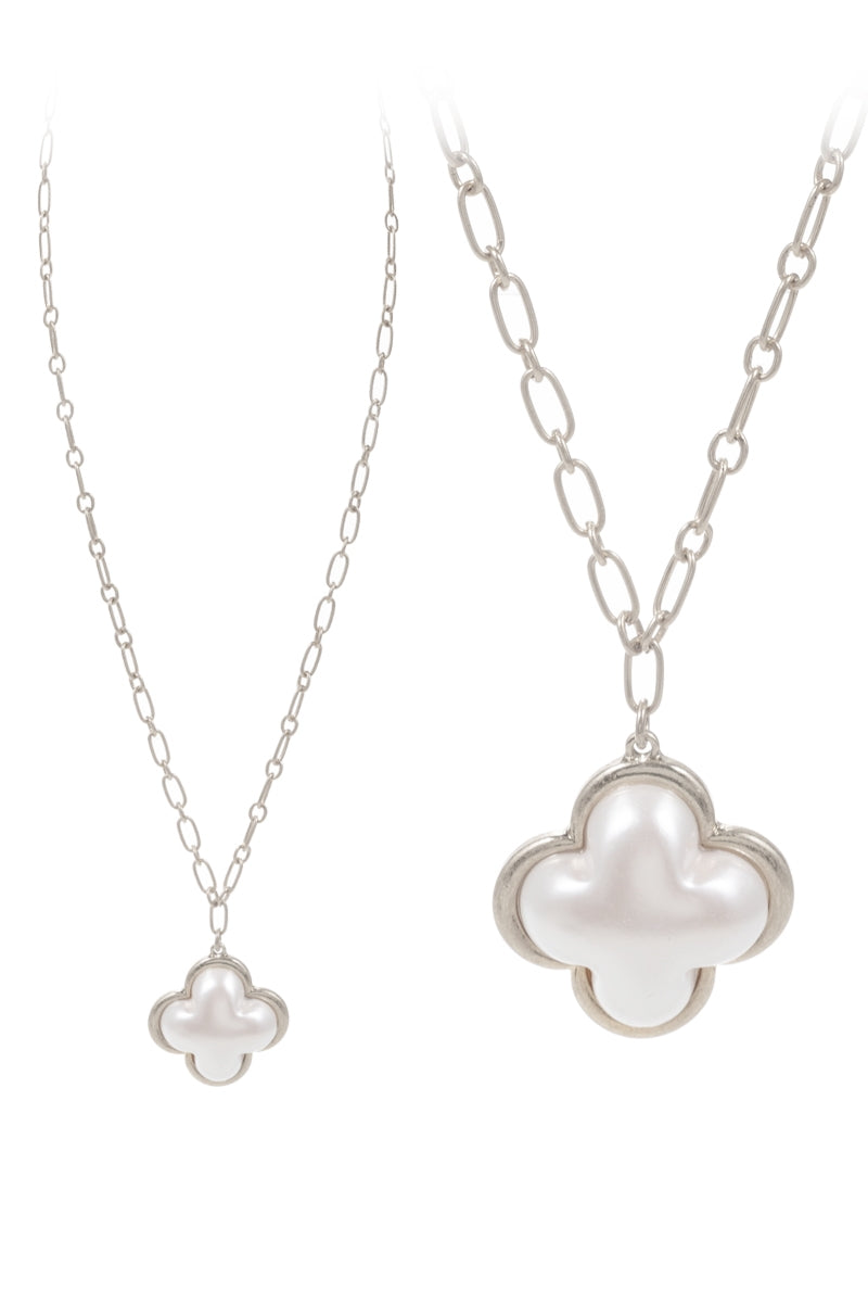 Enhance your outfit with our stunning 1.19 inch Quatrefoil shaped pearl cabochon short necklace. Perfect for any occasion, the elegant design and high-quality materials will add a touch of sophistication to your look. Made with a rare pearl cabochon and designed with a unique Quatrefoil shape, this necklace is a true statement piece.