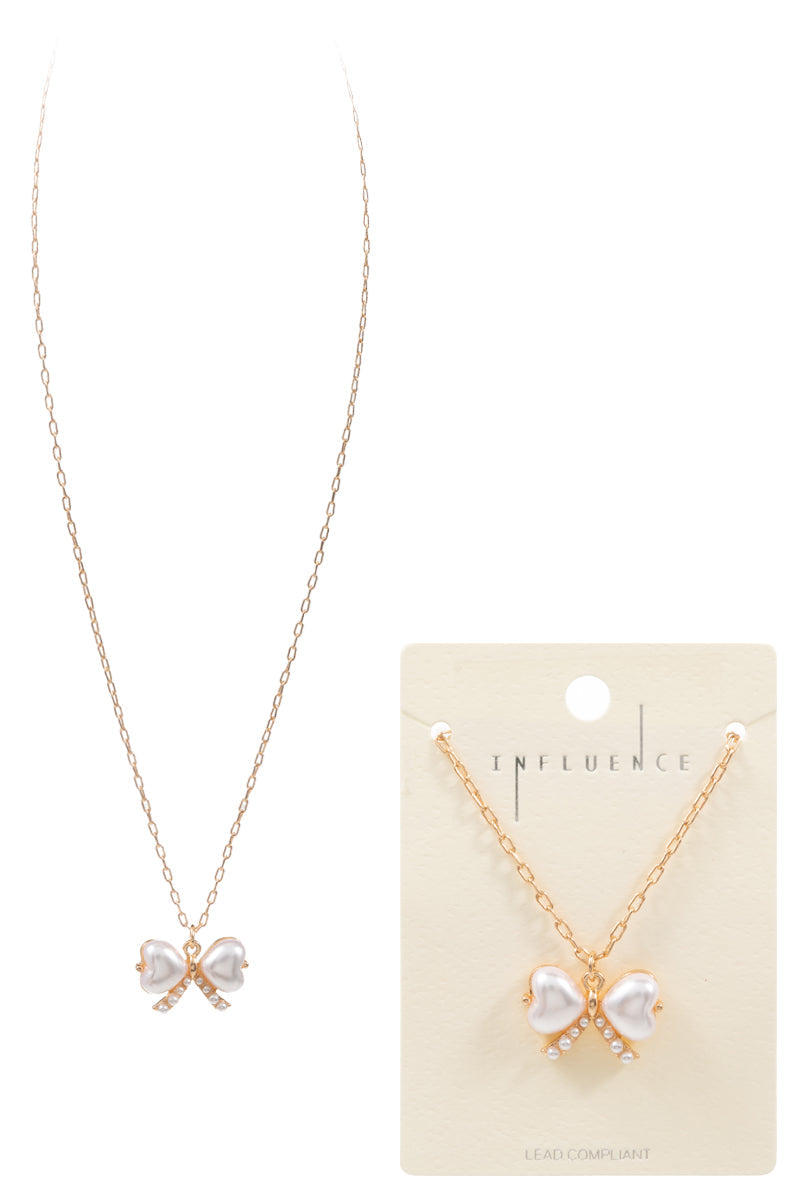 Ribbon Bow Shaped Pearl Short Necklace