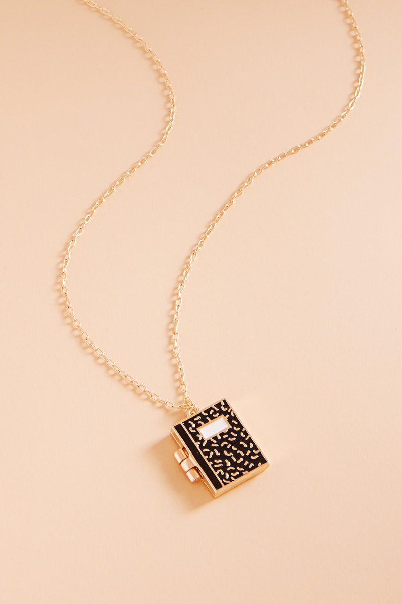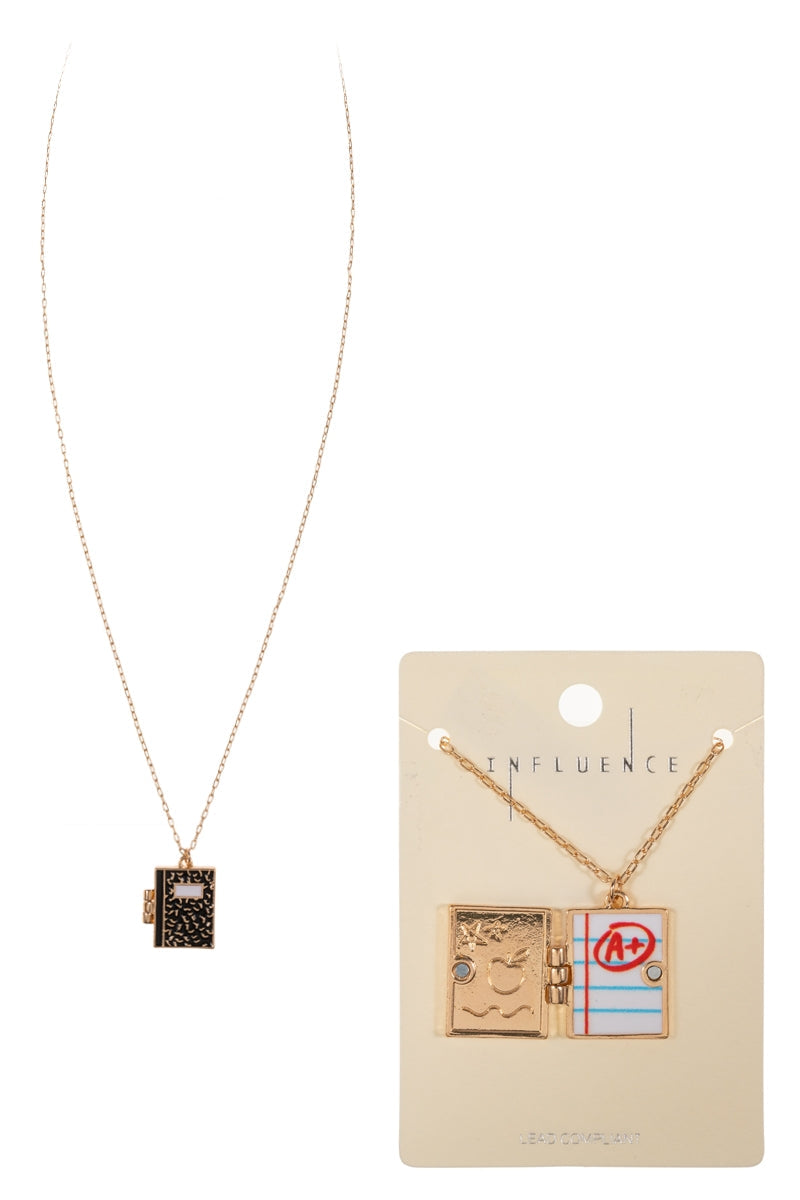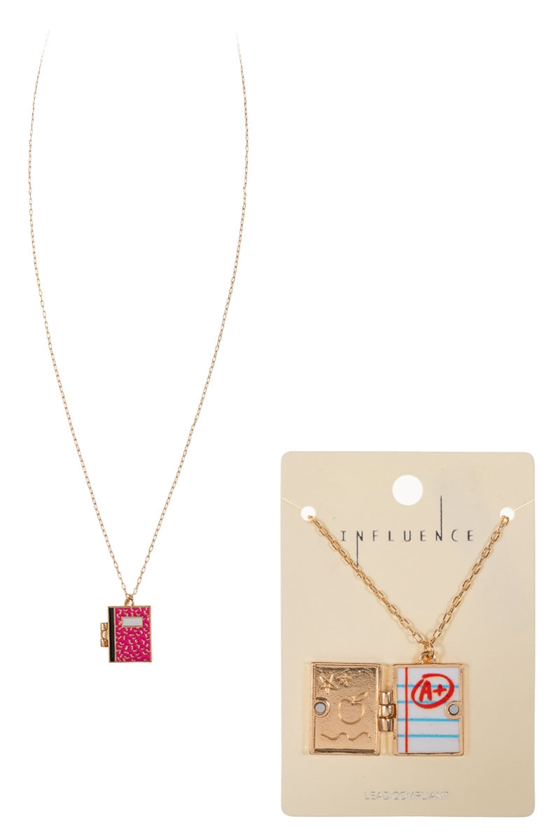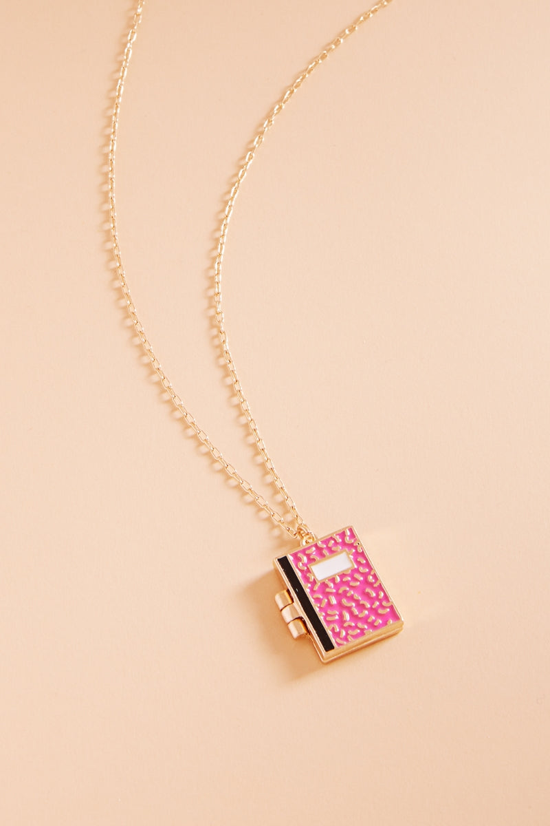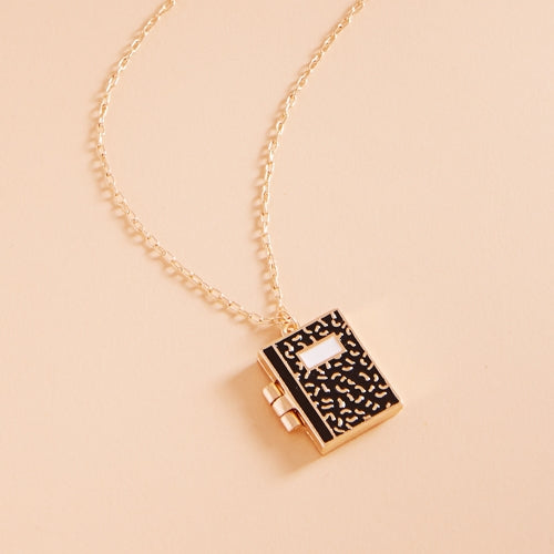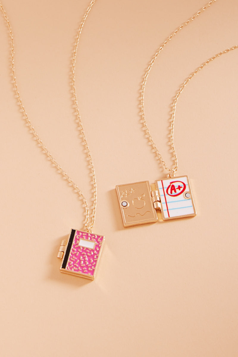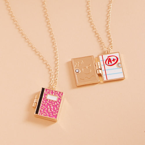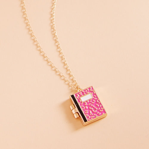 School Notebook Enameled Locket Short Necklace