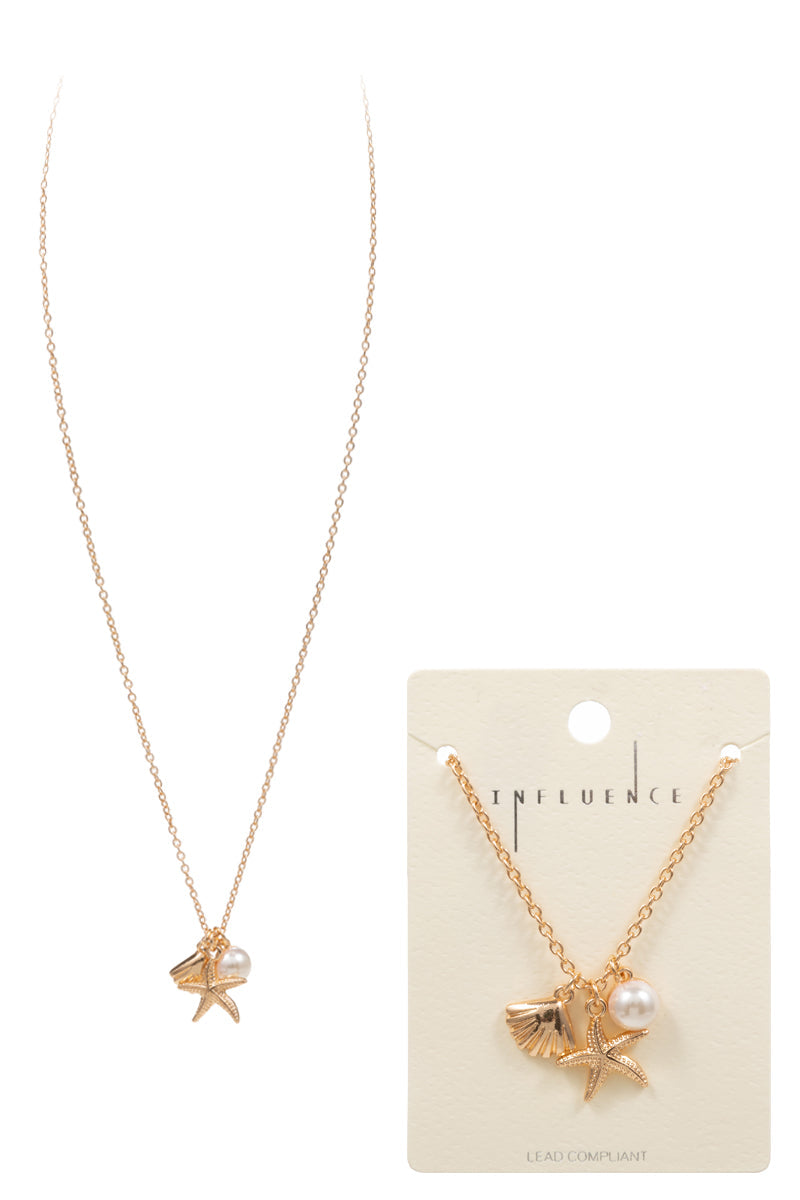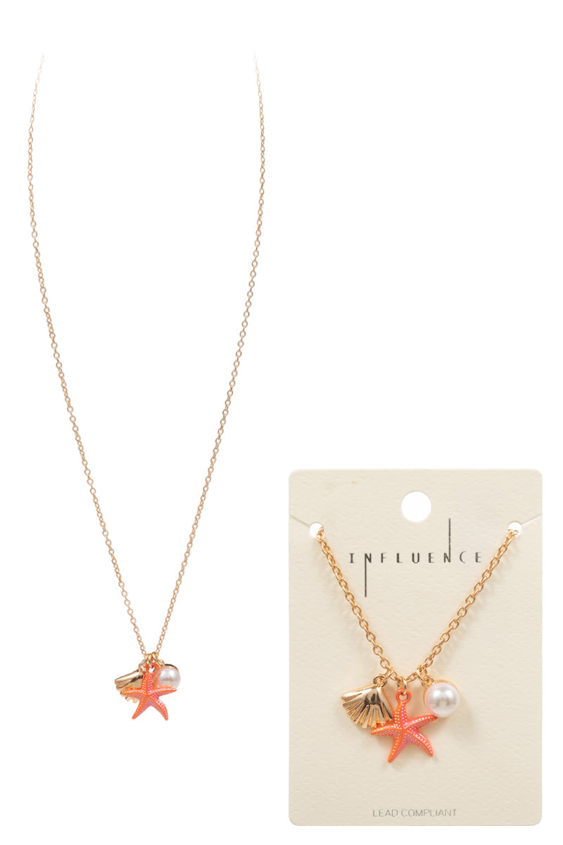 Sea Life Charm Pearl Cluster Summer Short Necklace