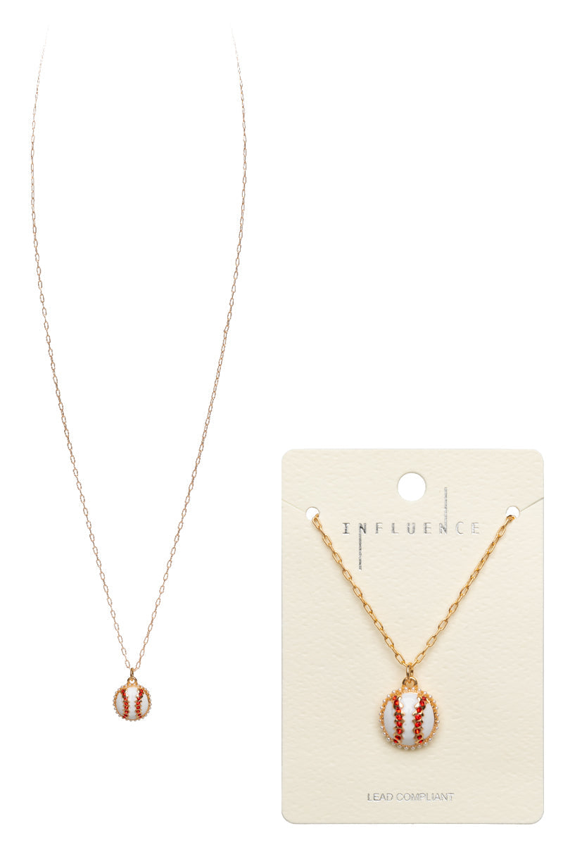 This 17 inch necklace features a unique baseball-shaped enamel pendant with pearls, perfect for any baseball lover. The pendant hangs from a short chain, adding a touch of elegance to any outfit. Show your love for the game with this one-of-a-kind necklace.