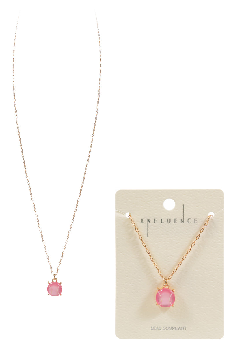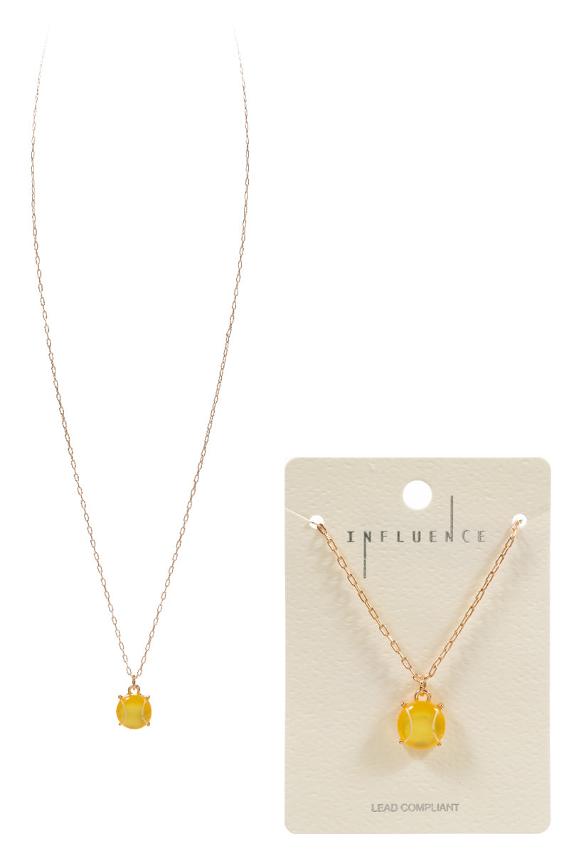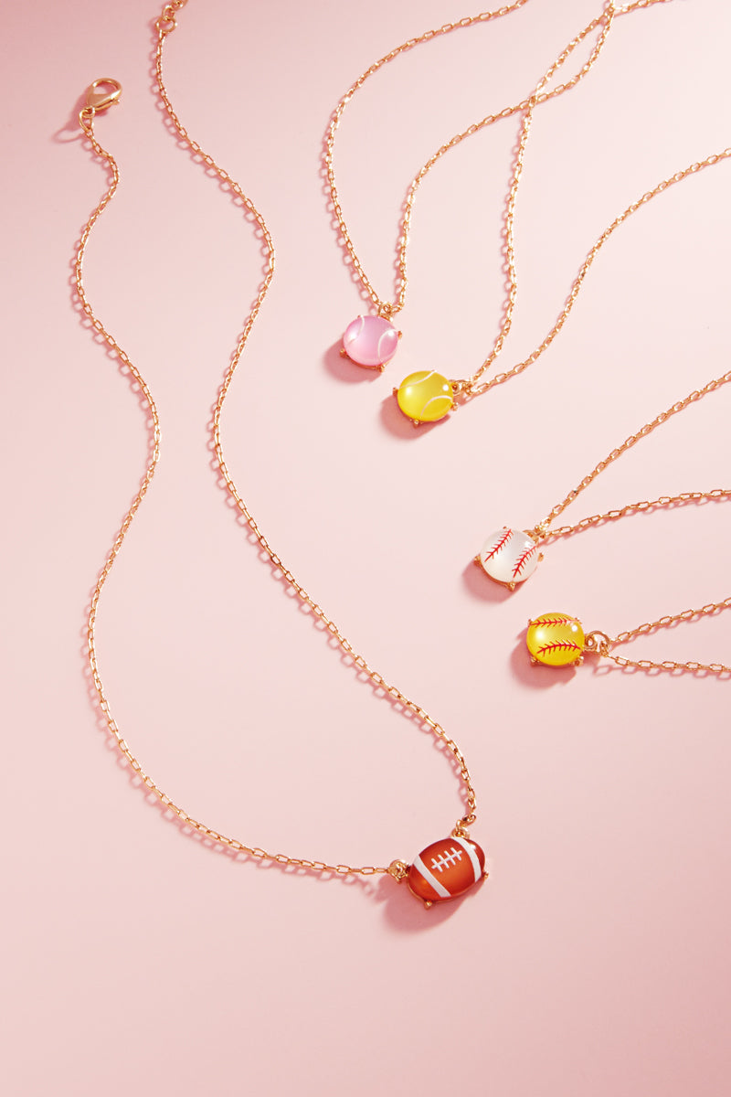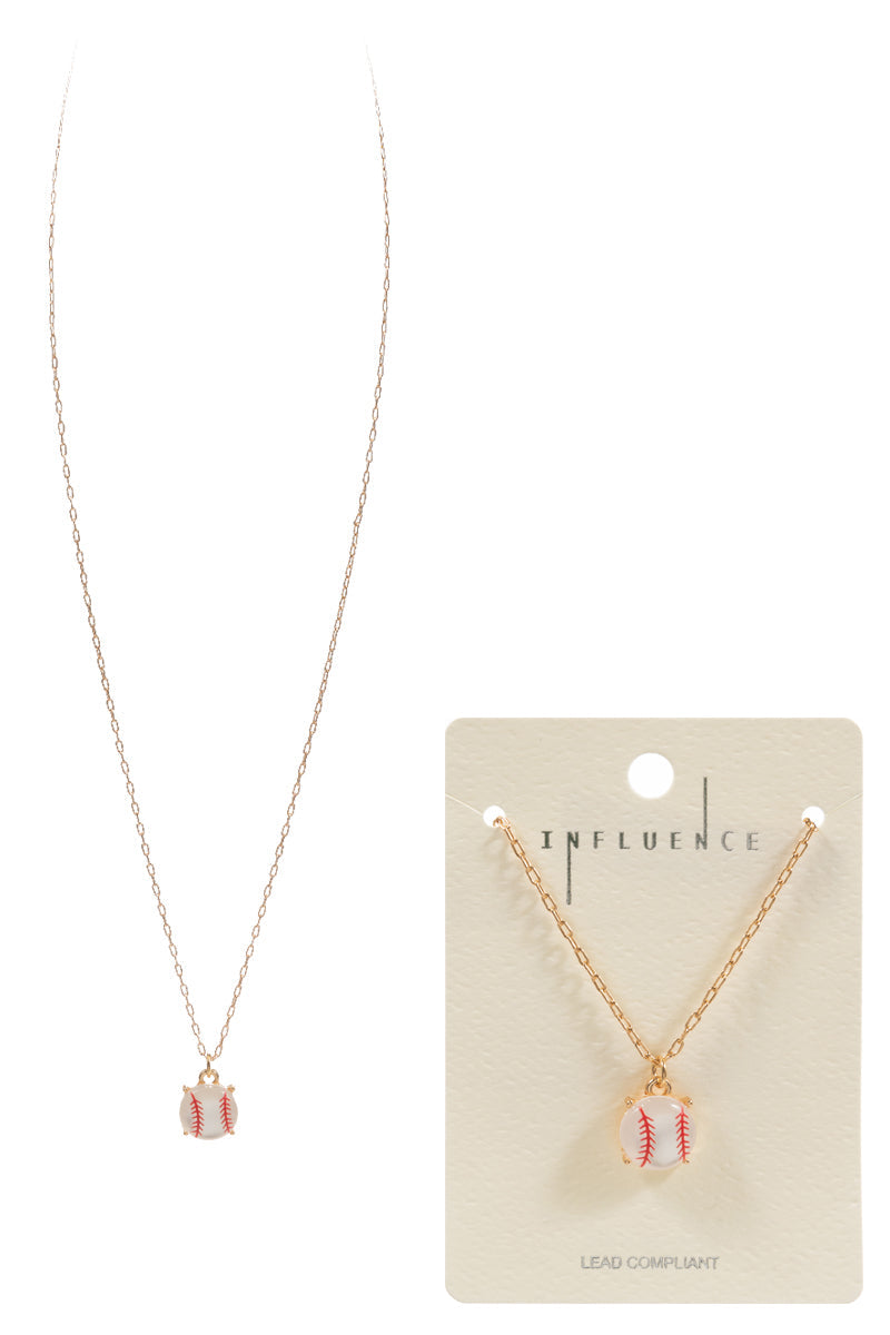 Enhance your style with this unique 17 inch necklace featuring a baseball-shaped faux stone pendant. The print adds a touch of sportiness, perfect for any fan. Stand out with this eye-catching accessory.