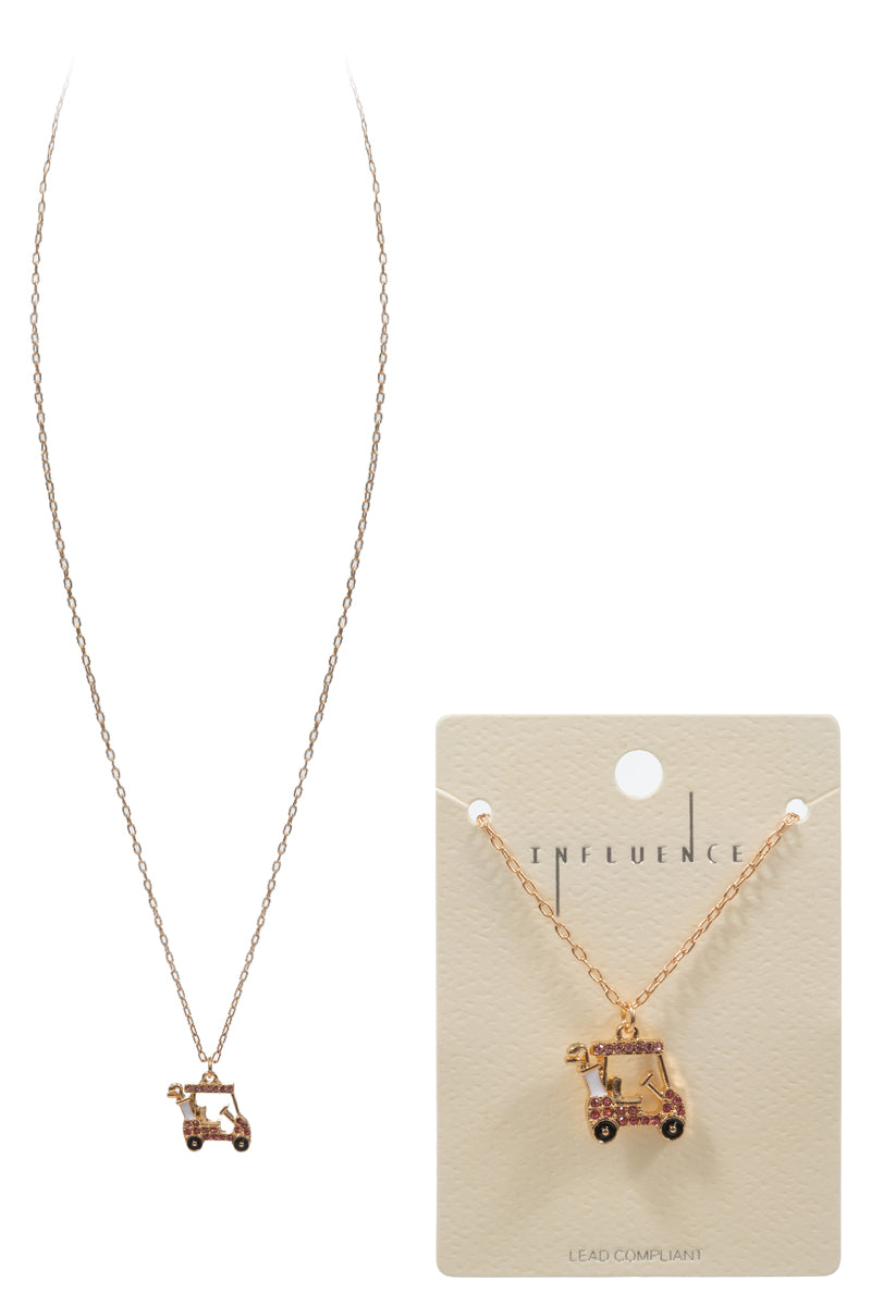 Sports Golf Cart Enamel With Stones Short Necklace