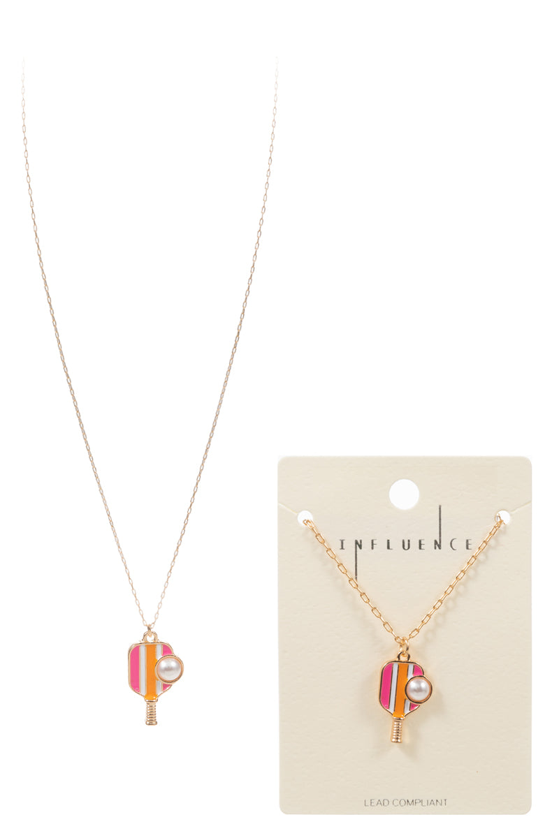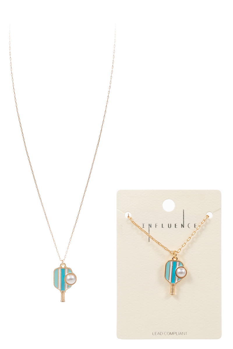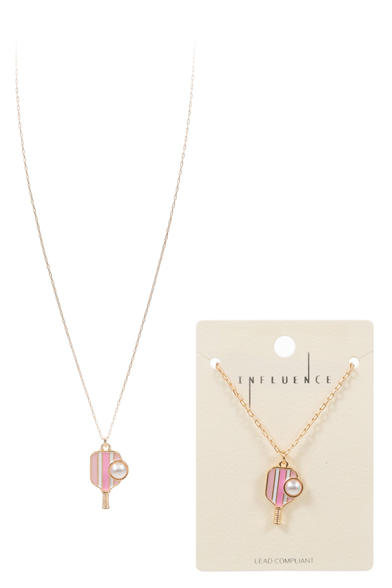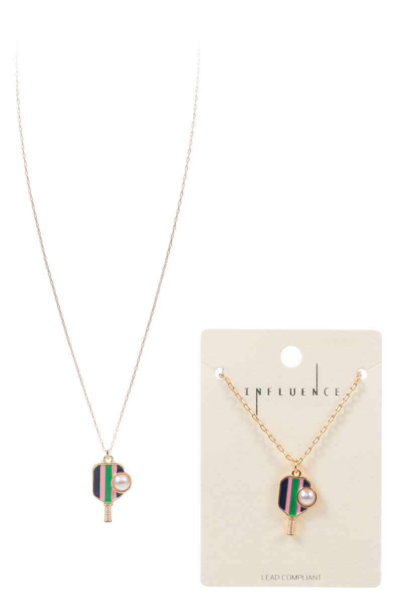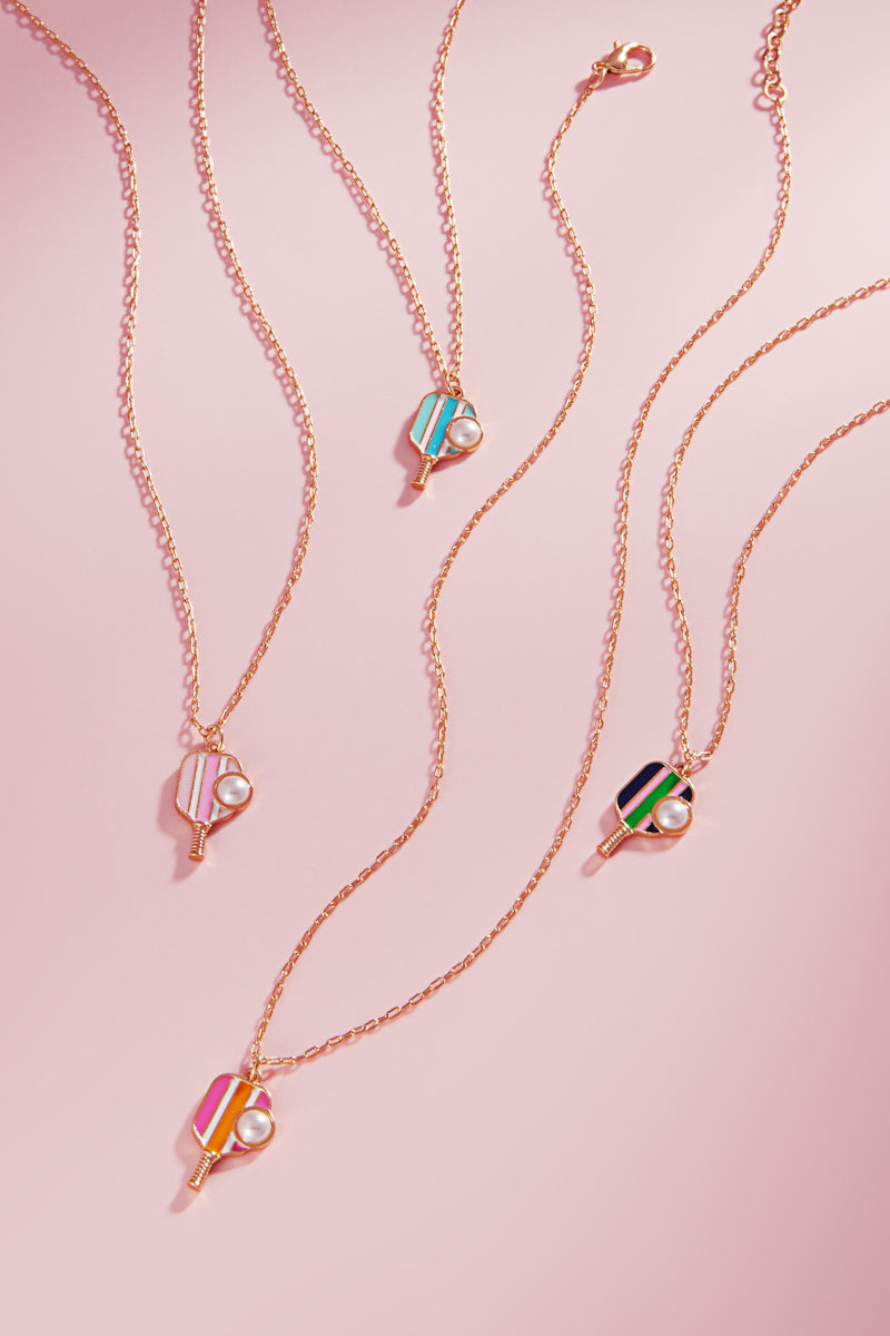 Expertly crafted, this stylish necklace features a 17 inch pickleball-shaped enamel encased in lustrous pearls. The perfect accessory for any pickleball enthusiast, this necklace adds a touch of elegance to any outfit.