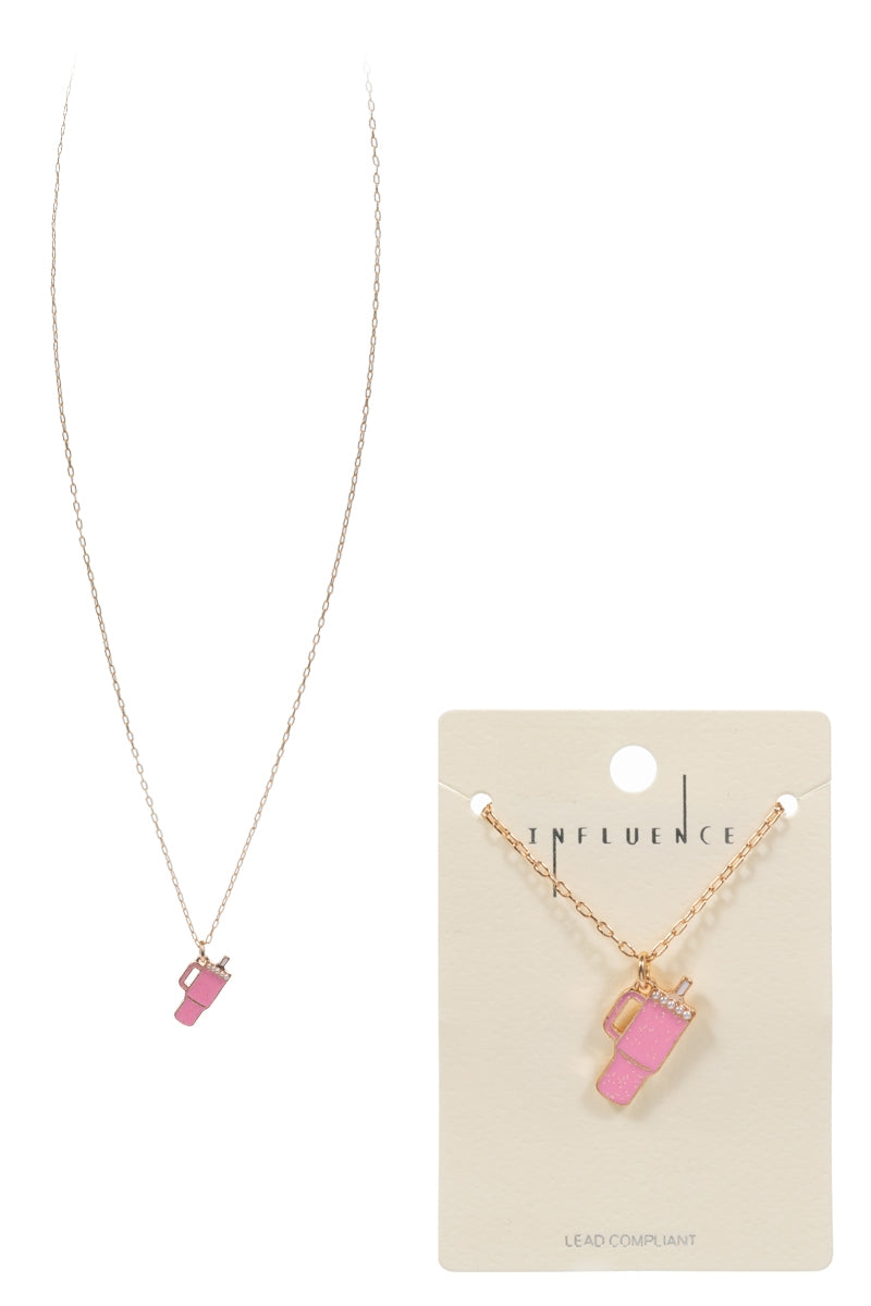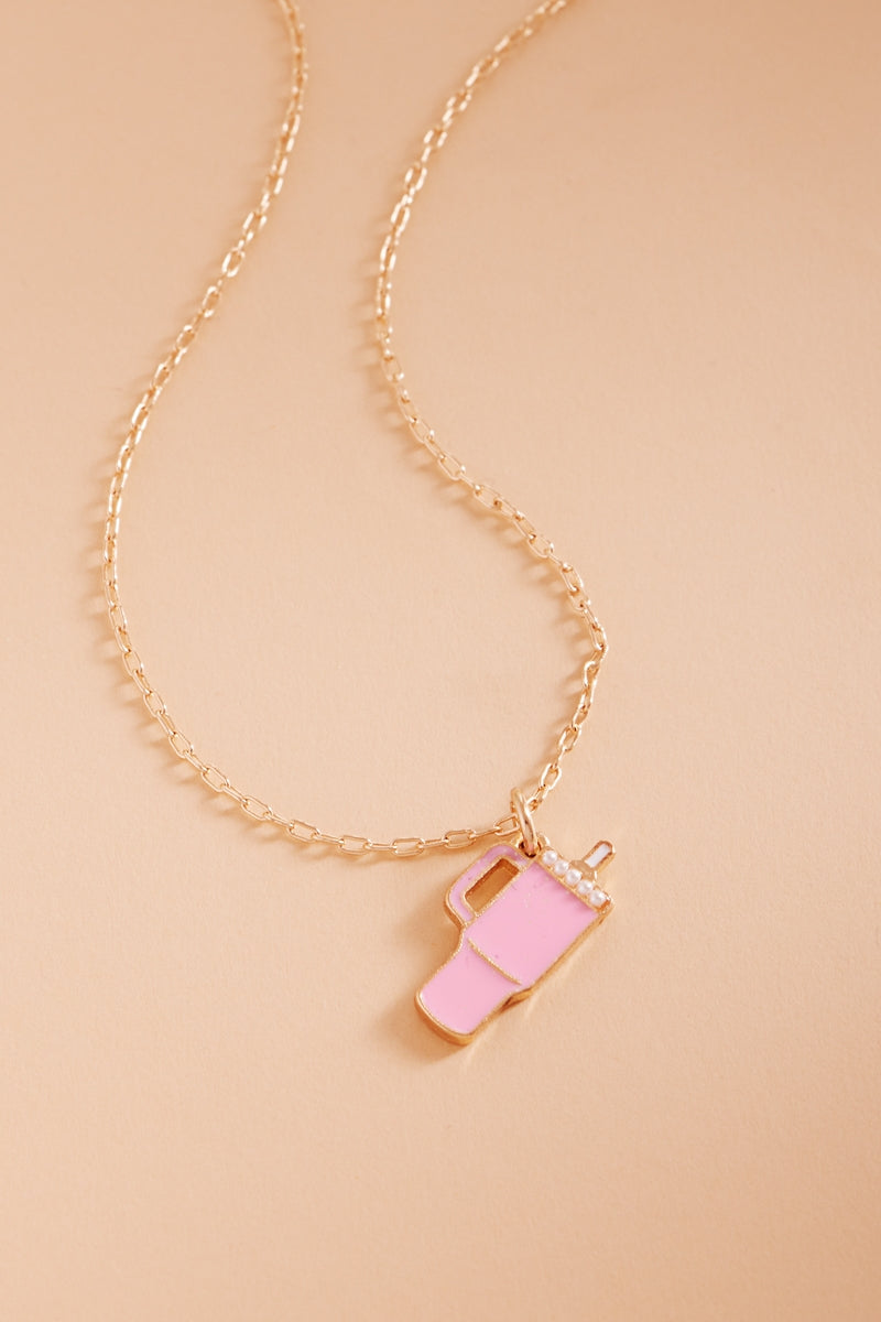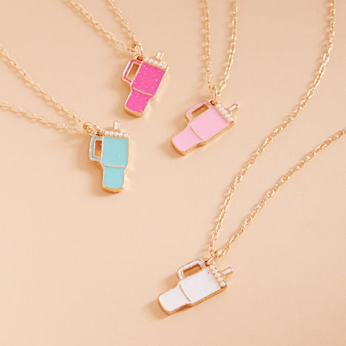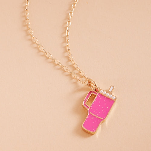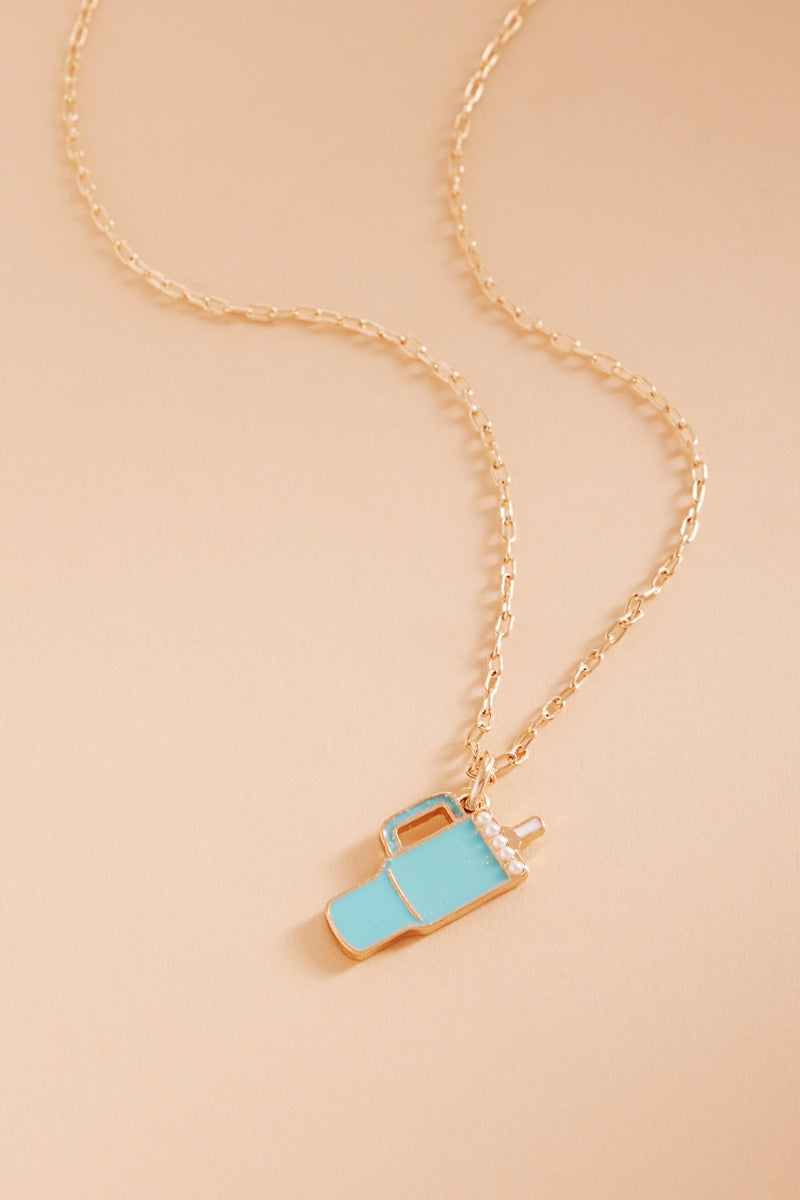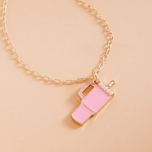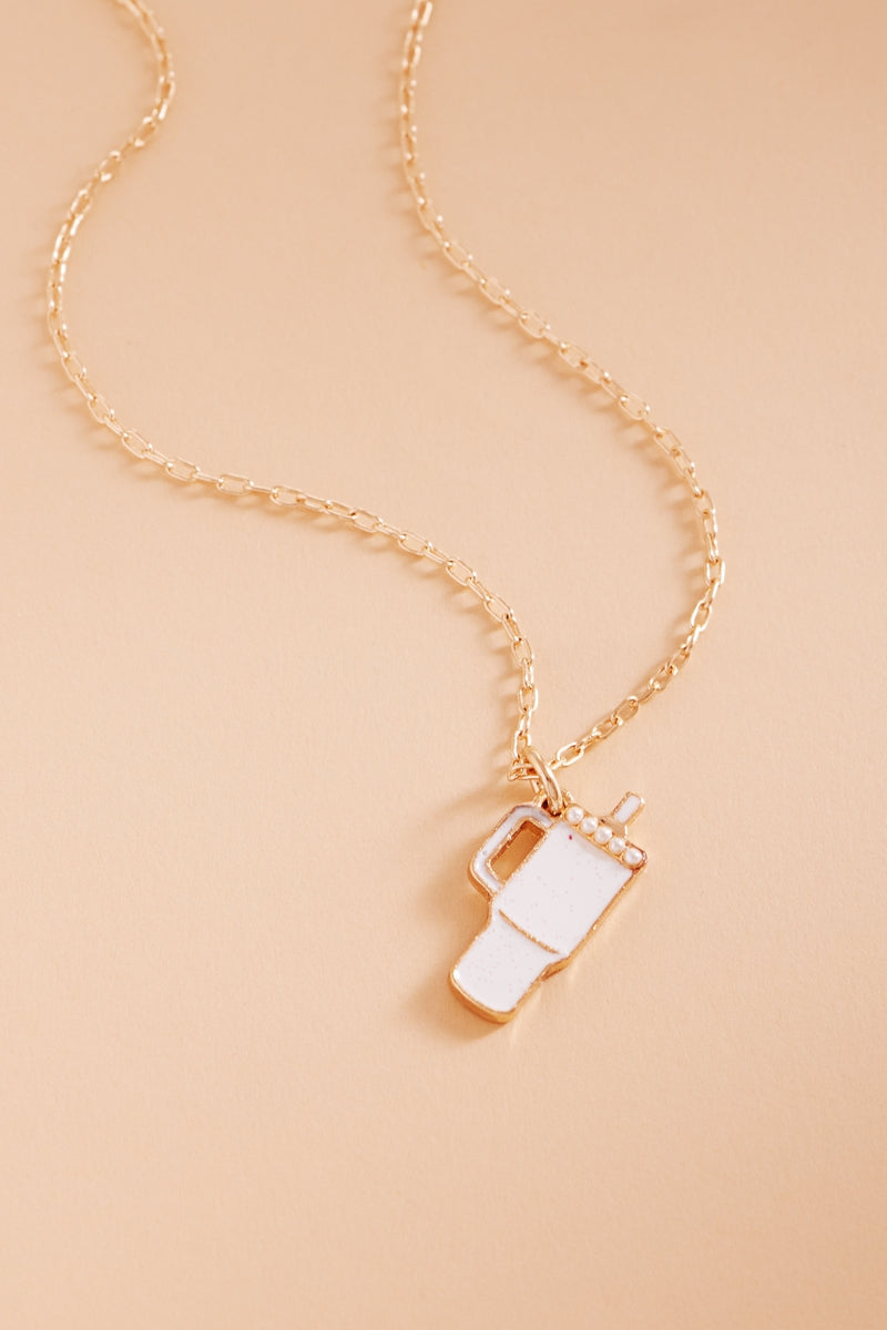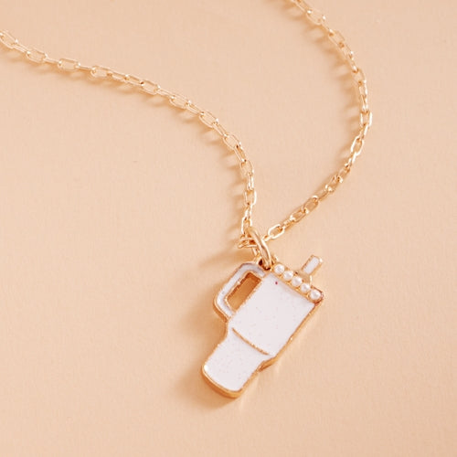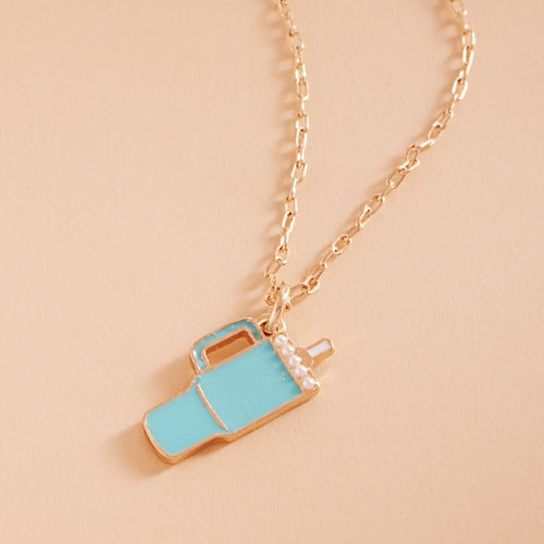 Sports Tumbler Shaped Enamel Pearl Short Necklace