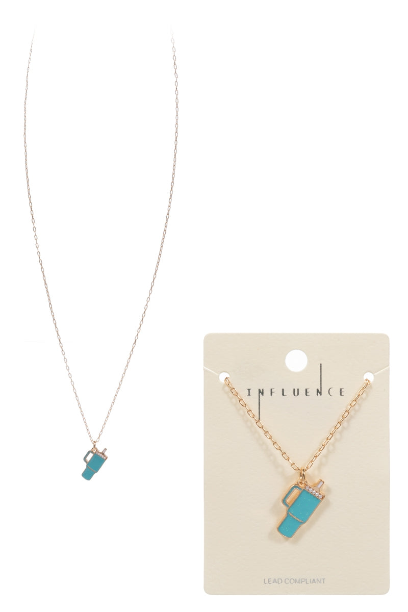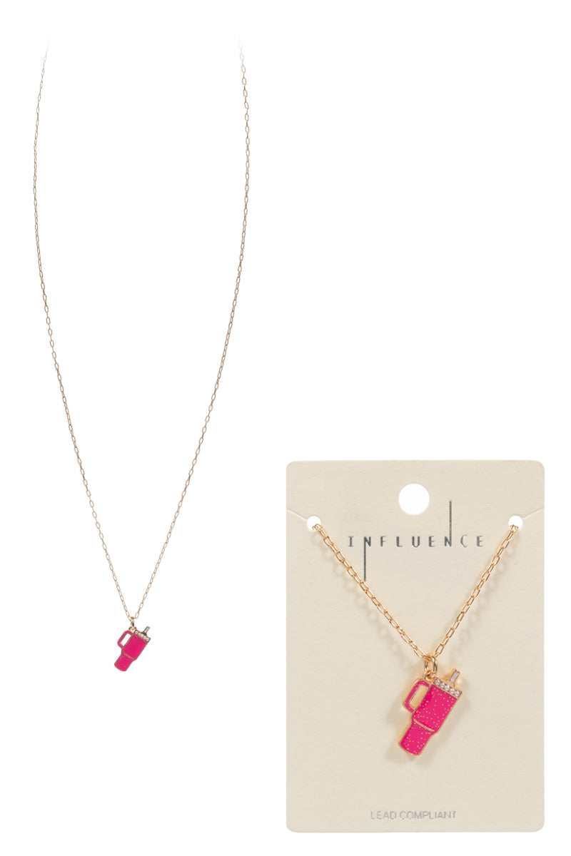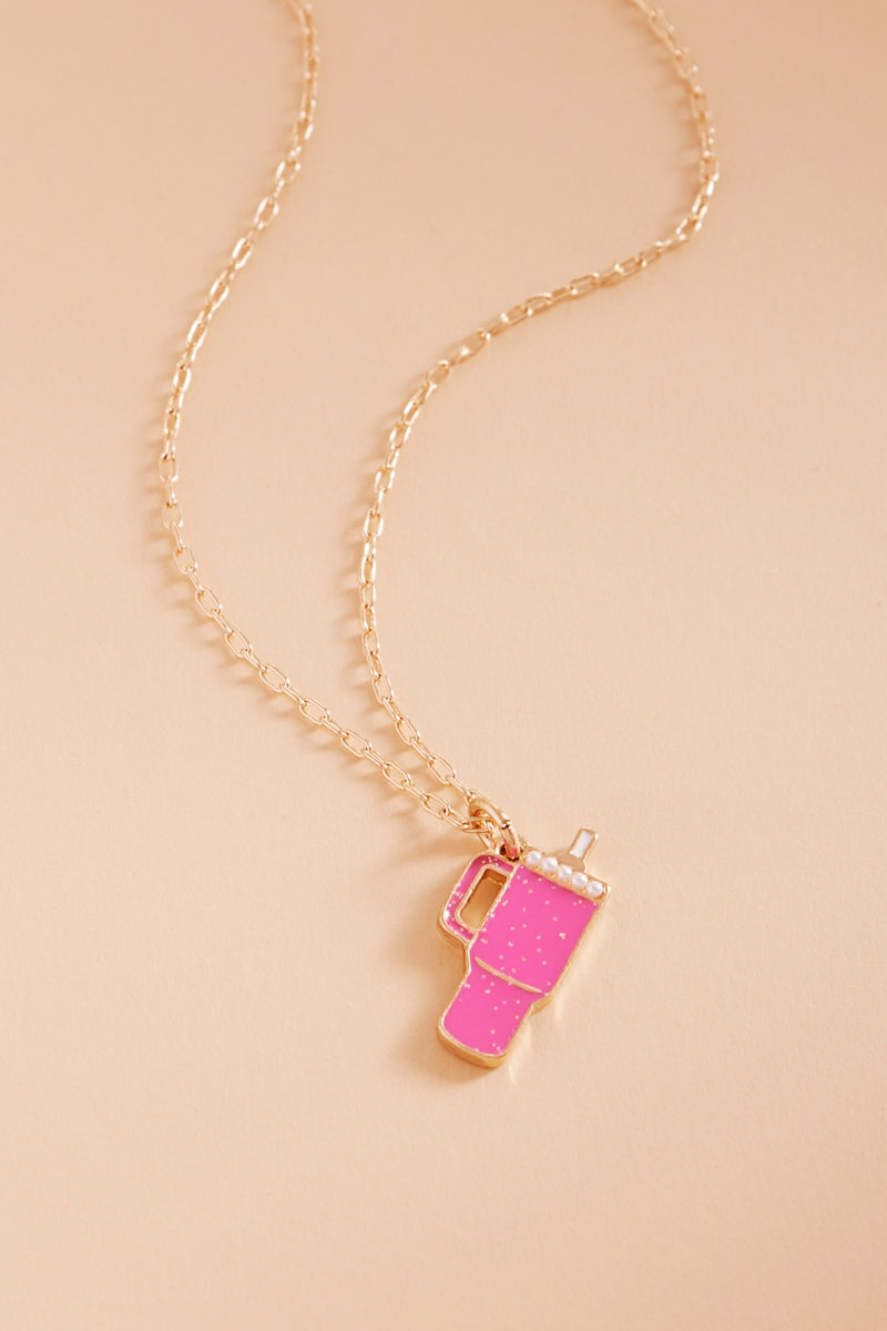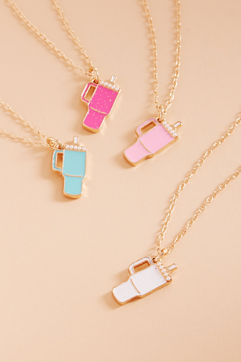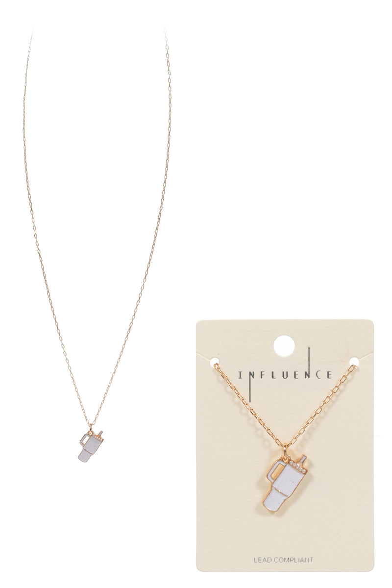 Sports Tumbler Shaped Enamel Pearl Short Necklace
