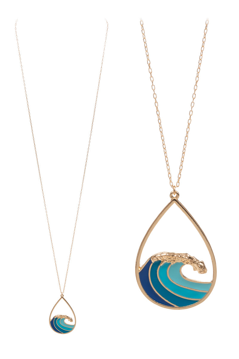 Teardrop Wave Pendant Summer Sealife Long Necklace