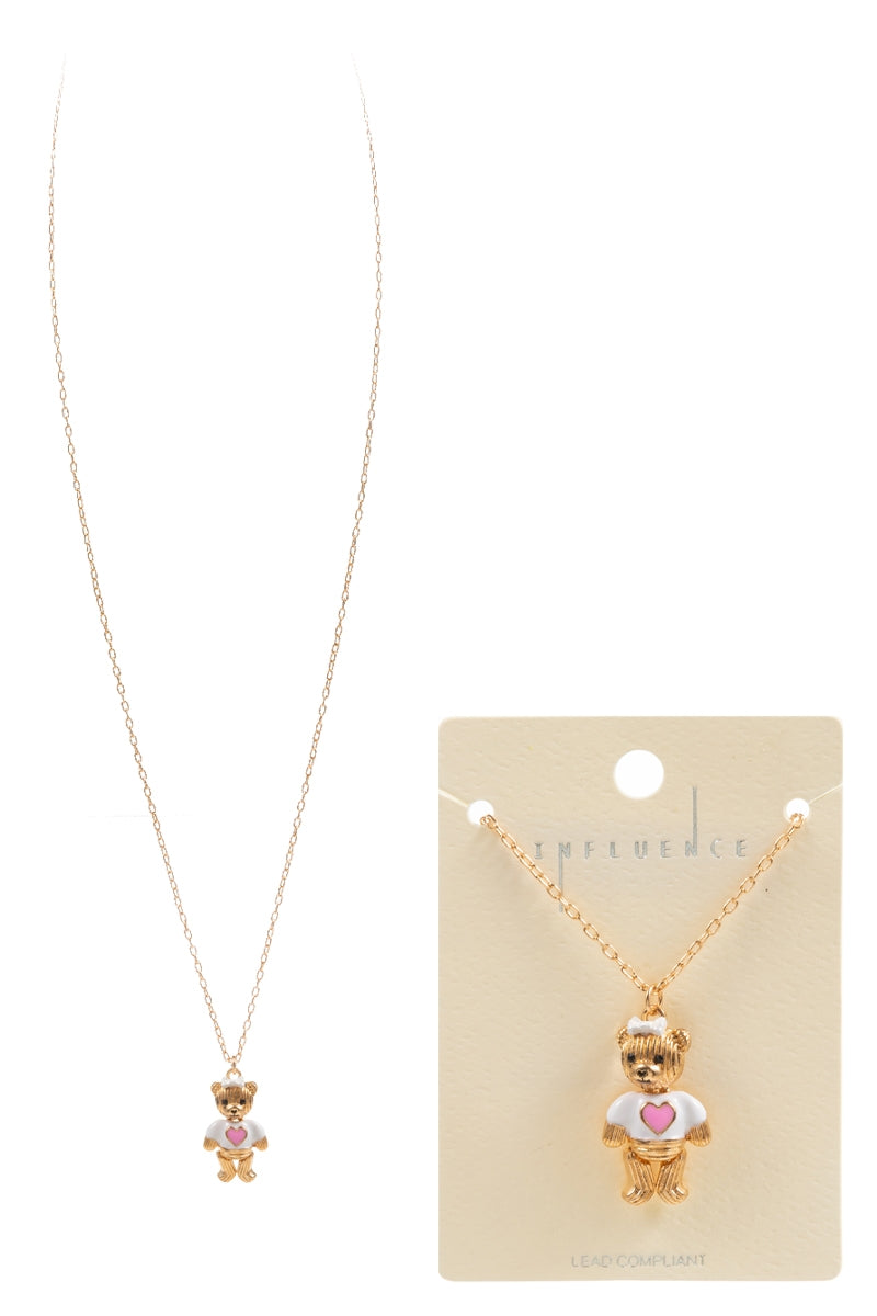 Valentines Day Teddy Bear Metal Bow Short Necklace