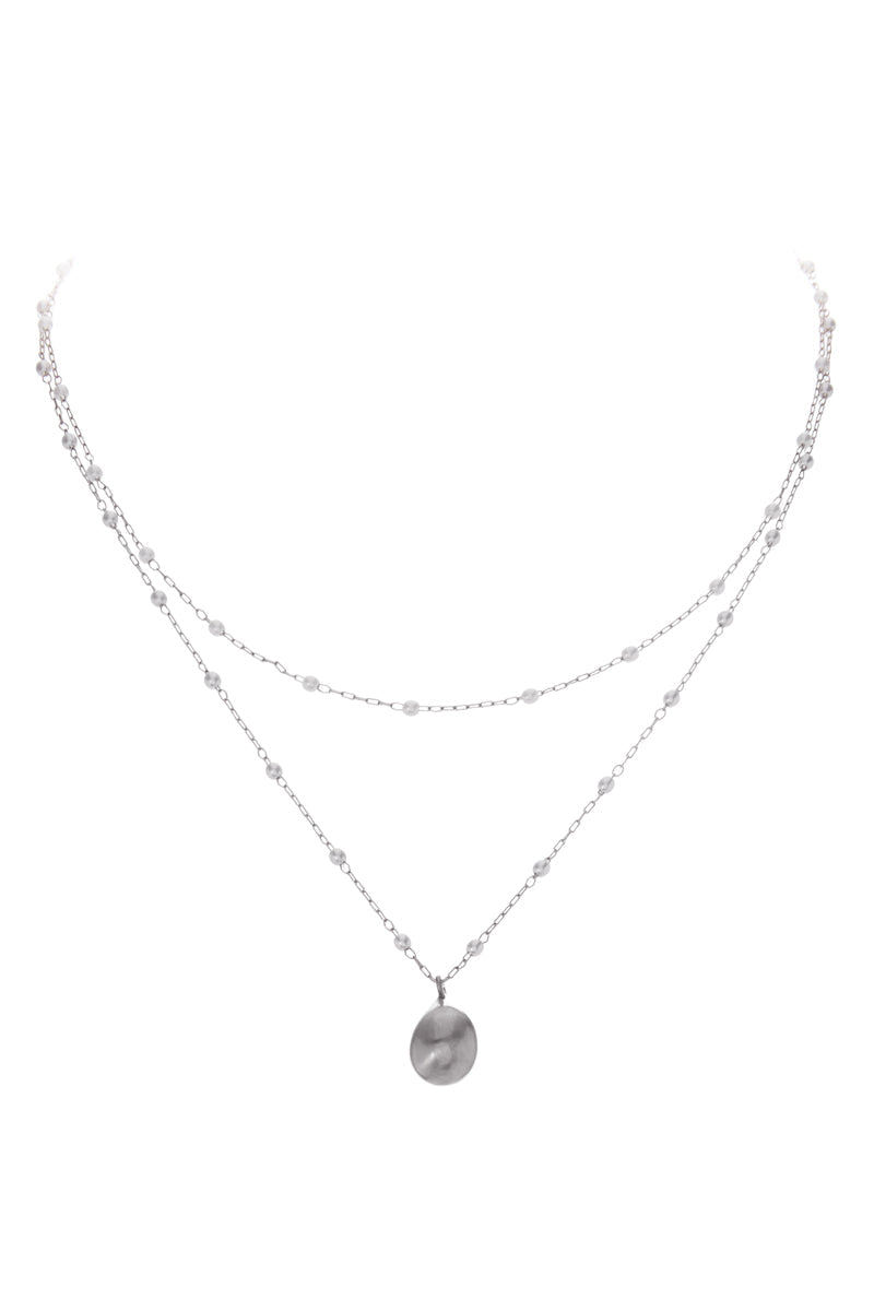 This metal necklace features a polished satin plating layer, adding a touch of elegance to any outfit. Measuring 16 and 18 inches in length, it is versatile and can be worn at different lengths for various looks.