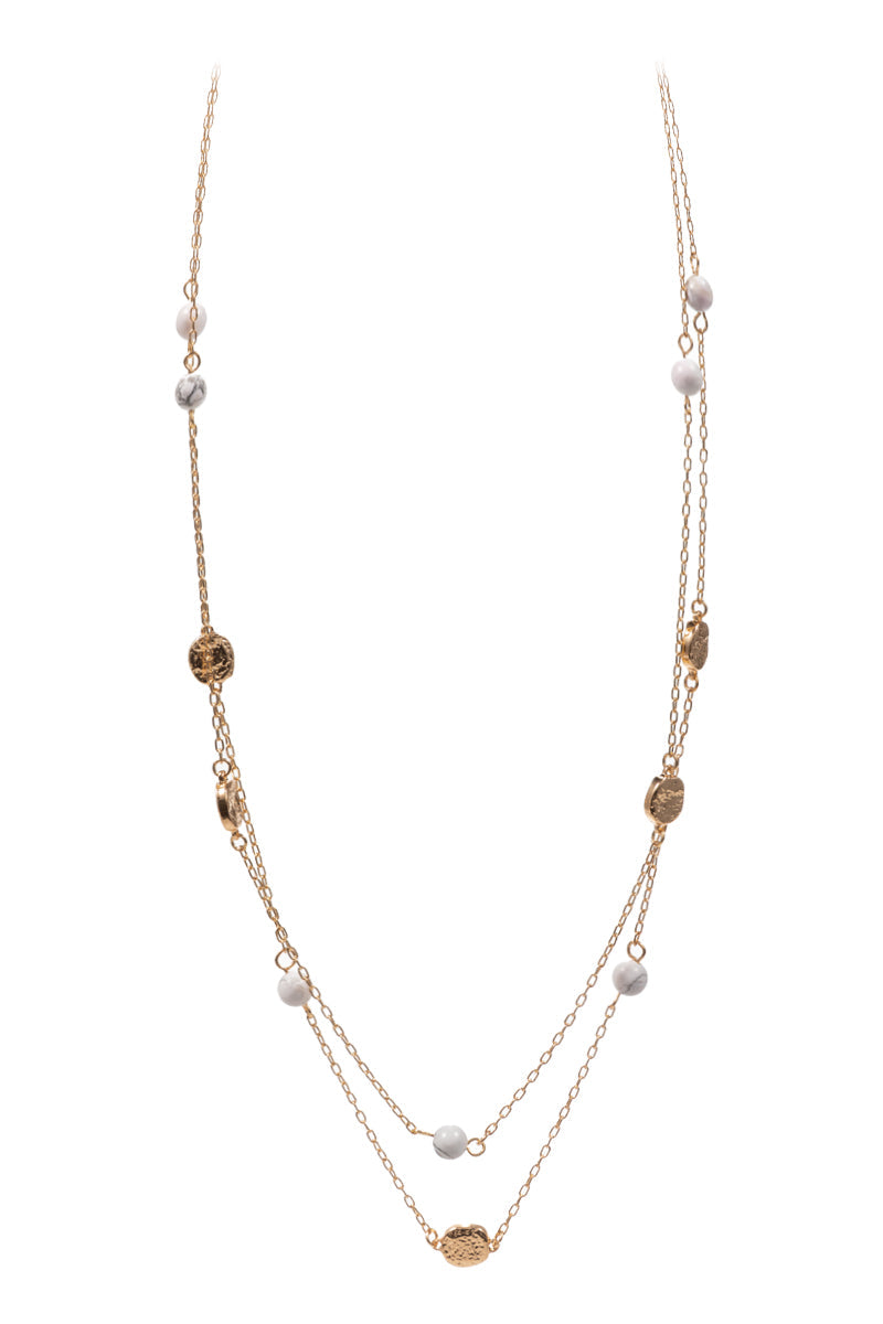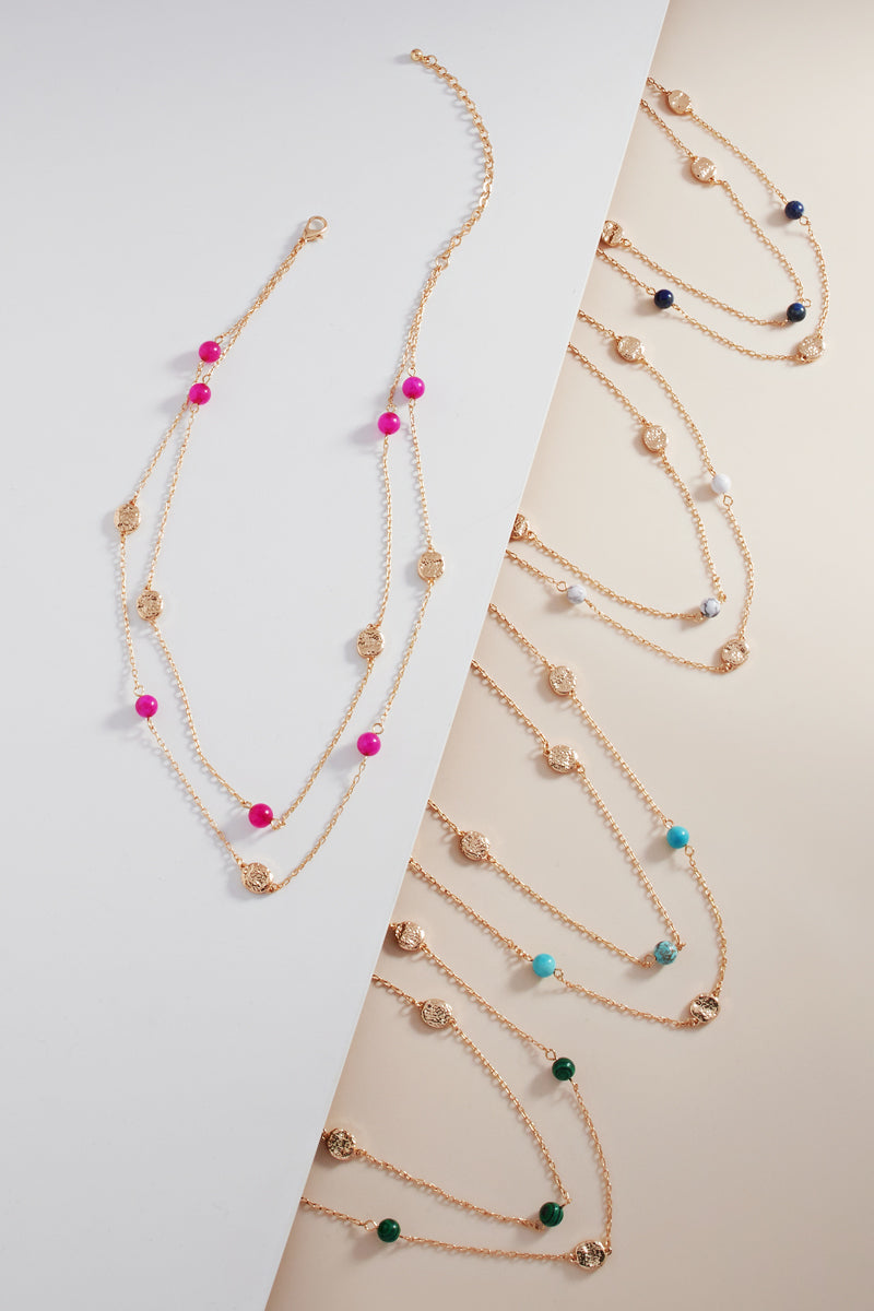 Handcrafted with precision, this necklace features unique stone beads that add texture and dimension. The layered design gives you the versatility to wear it multiple ways, making it a must-have accessory for any outfit.