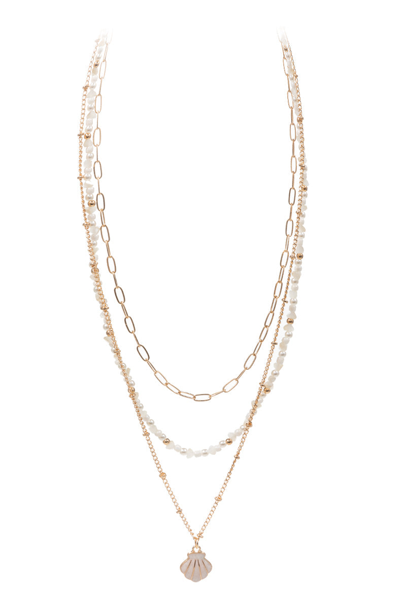Shell Charm W Mixed Beads Summer Layered Necklace