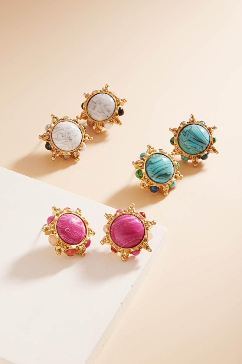 Vintage Resin Epoxy Stone Layered Post Earrings