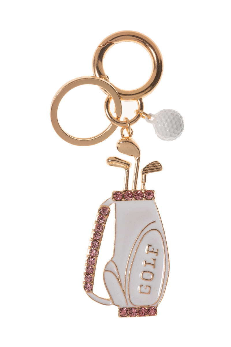 Sports Golf Bag Shaped Enamel With Stones Keychain