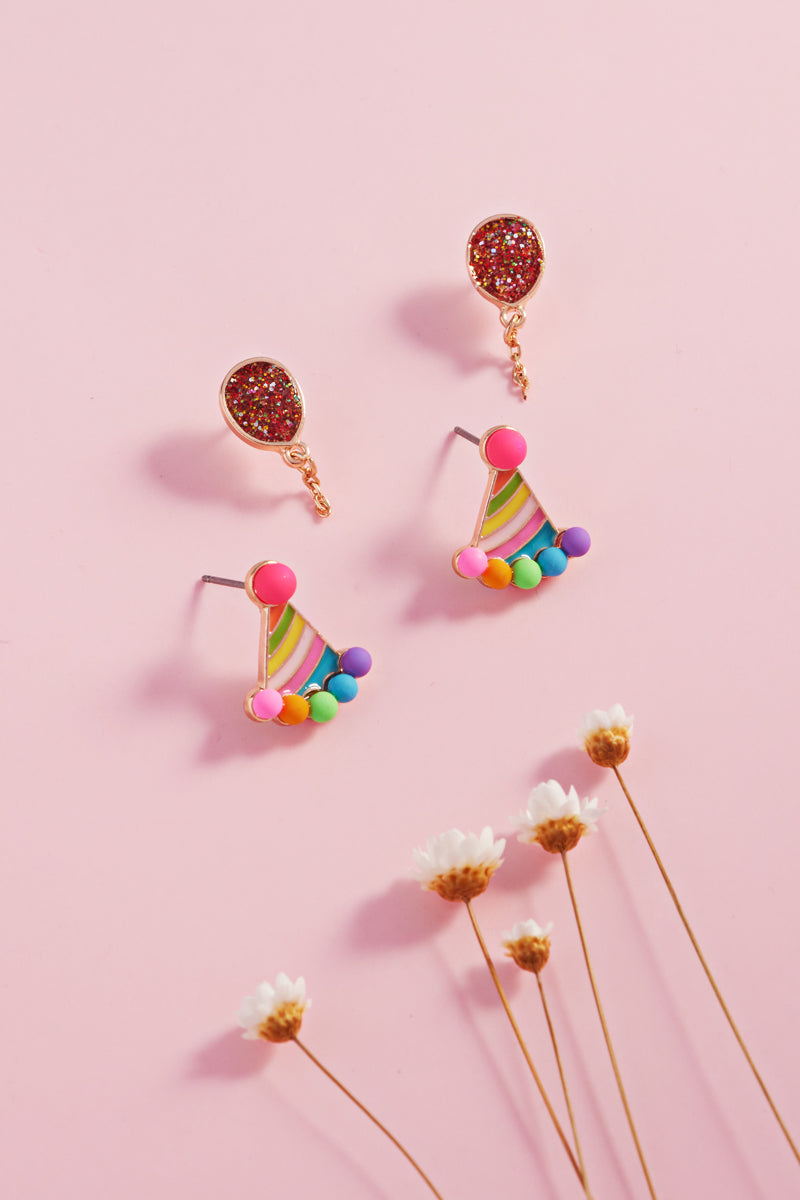 Balloon Party Hat Birthday Kids Post Earrings Set