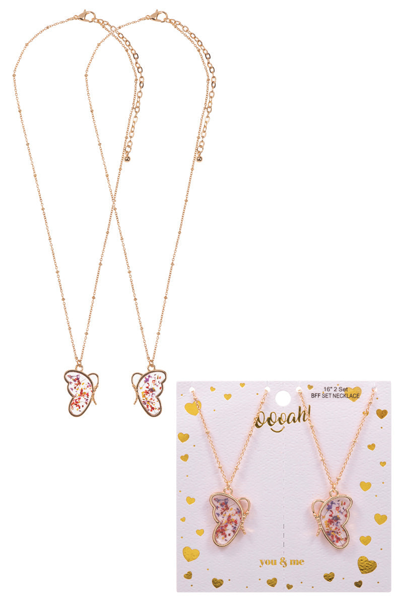 Butterfly Pressed Flower Kids 2 Set Short Necklace