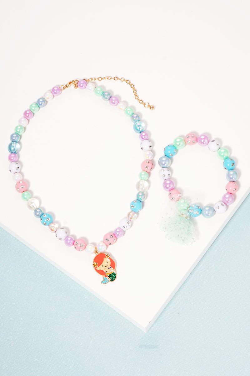 Expertly crafted for your little one's imagination, this mermaid-themed cloud kids set includes a 14-inch necklace and a 6.25-inch bracelet. Made with high-quality materials, this set will inspire hours of imaginative play while promoting fine motor skills and hand-eye coordina.