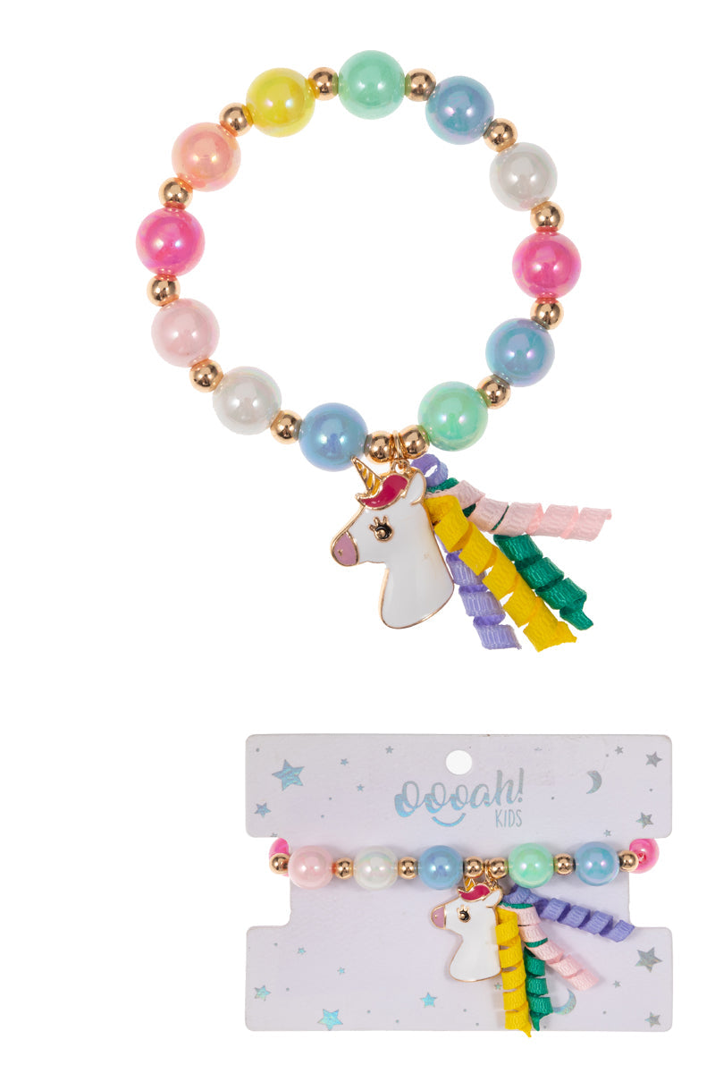 Unicorn With Curly Hair Kids Stretch Bracelet