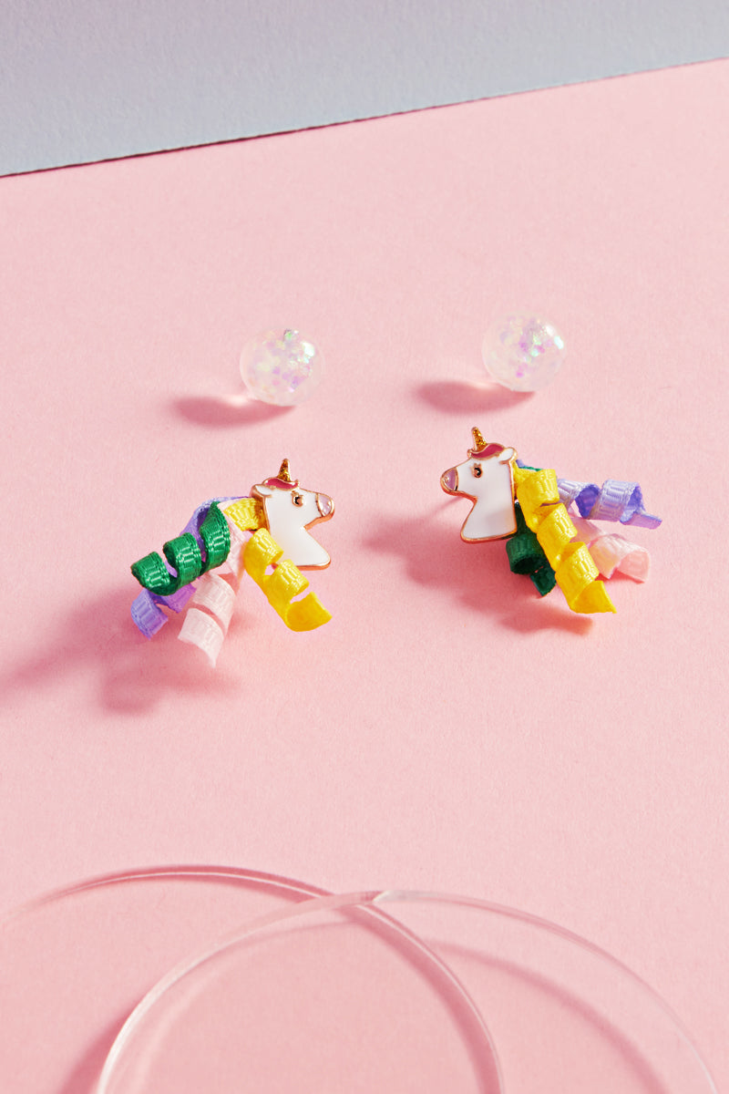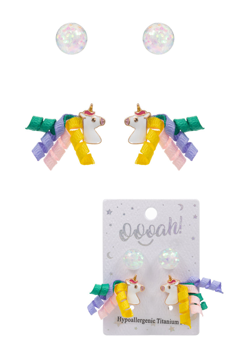 Unicorn With Glitter Kids Post Earrings 2 Set