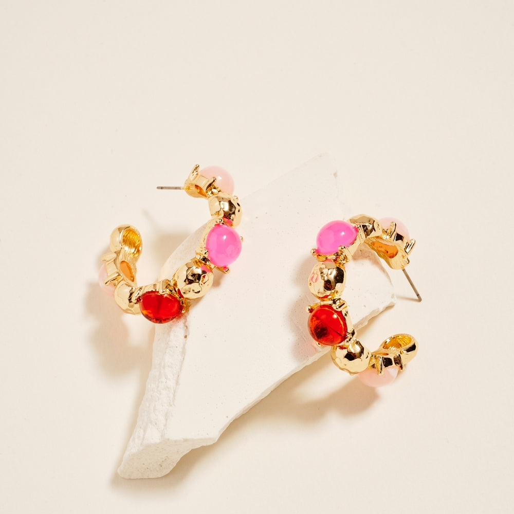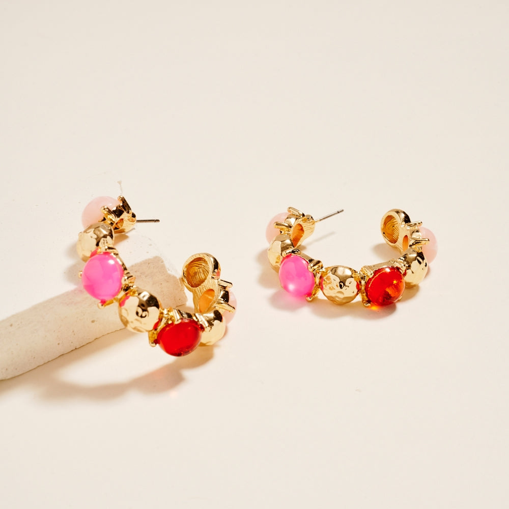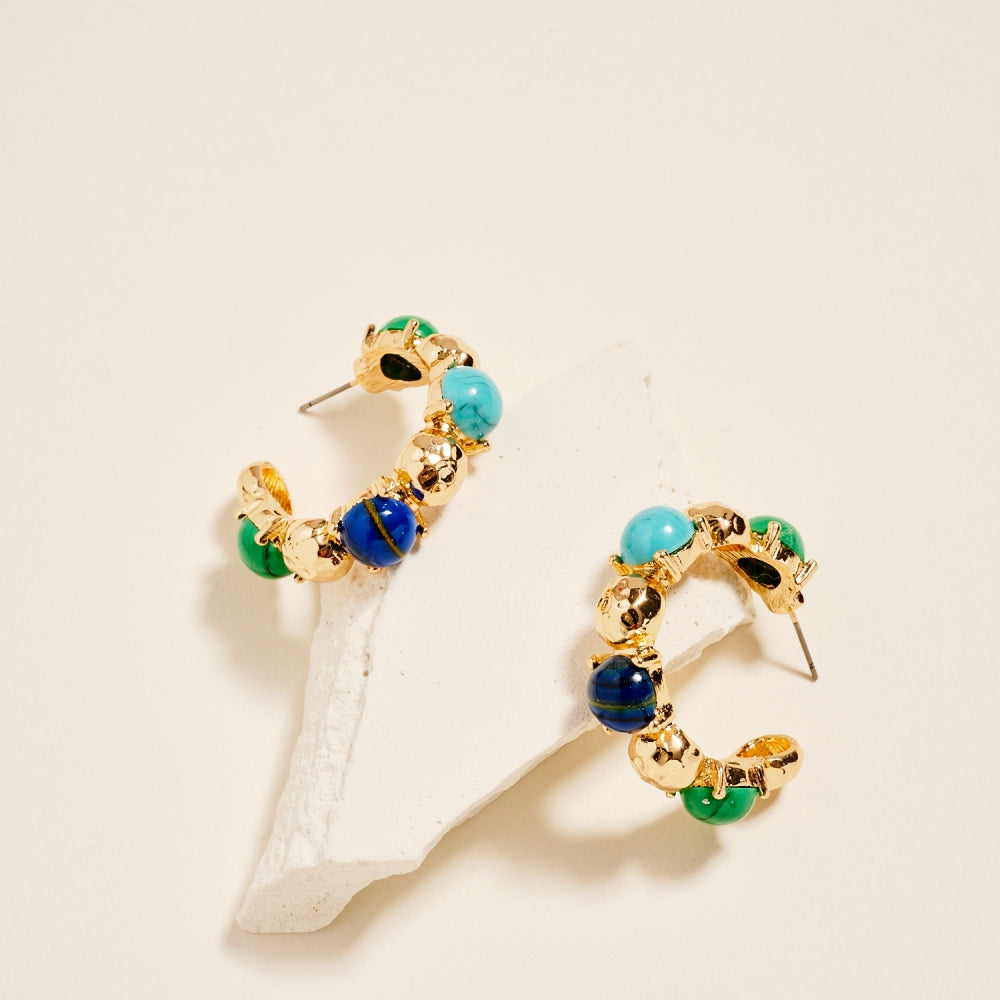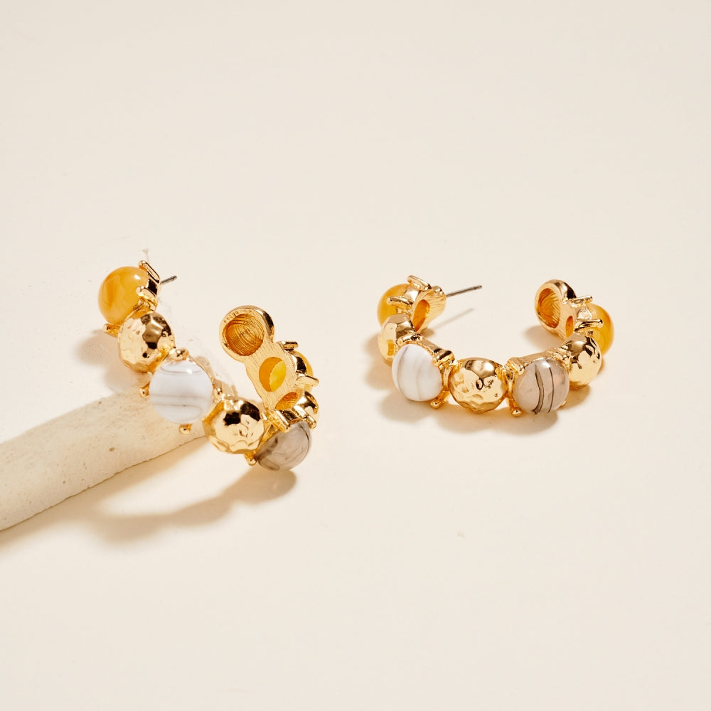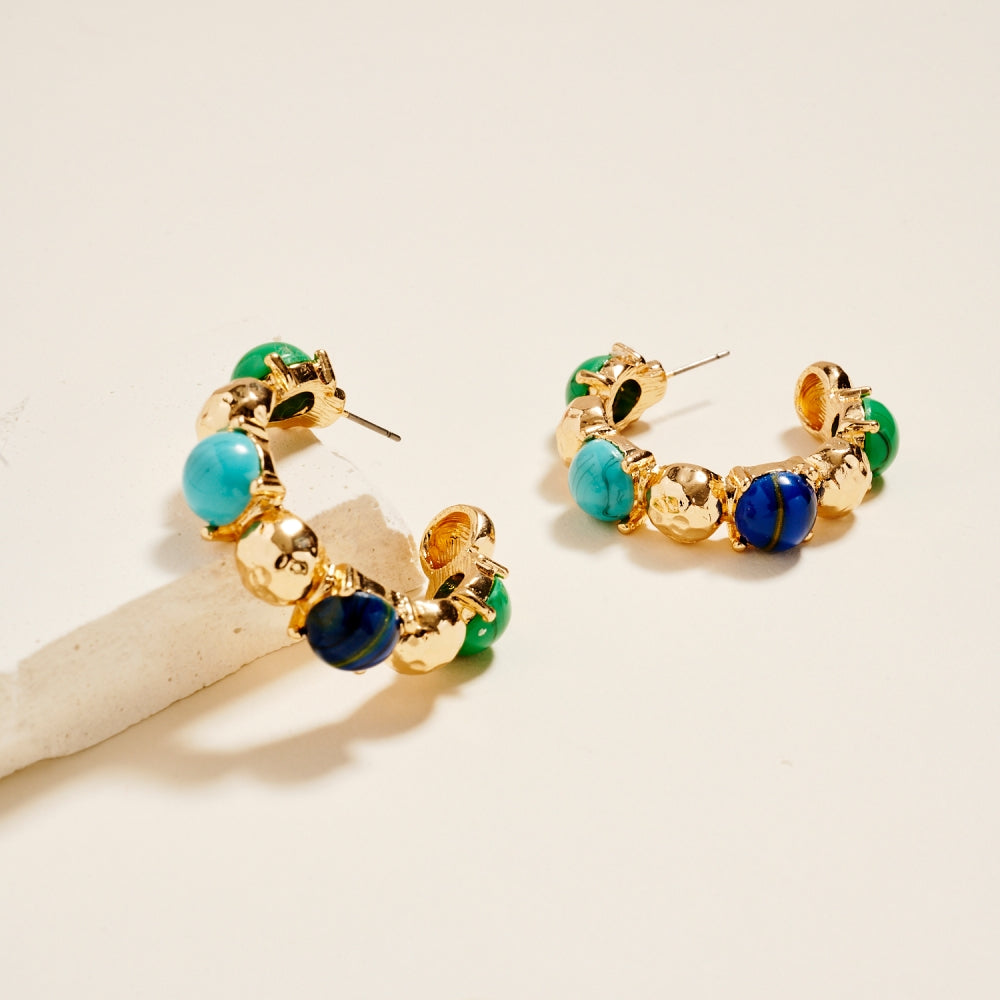 1.5 Inch Vintage Resin Epoxy Stone Hoop Earrings