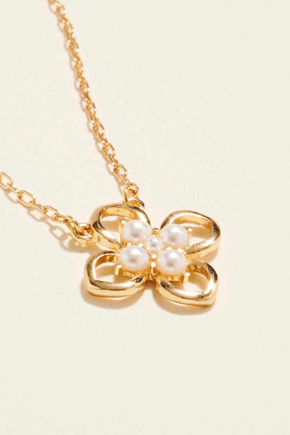 17 Inch Clover Shaped Pearl Flower Leaf Necklace