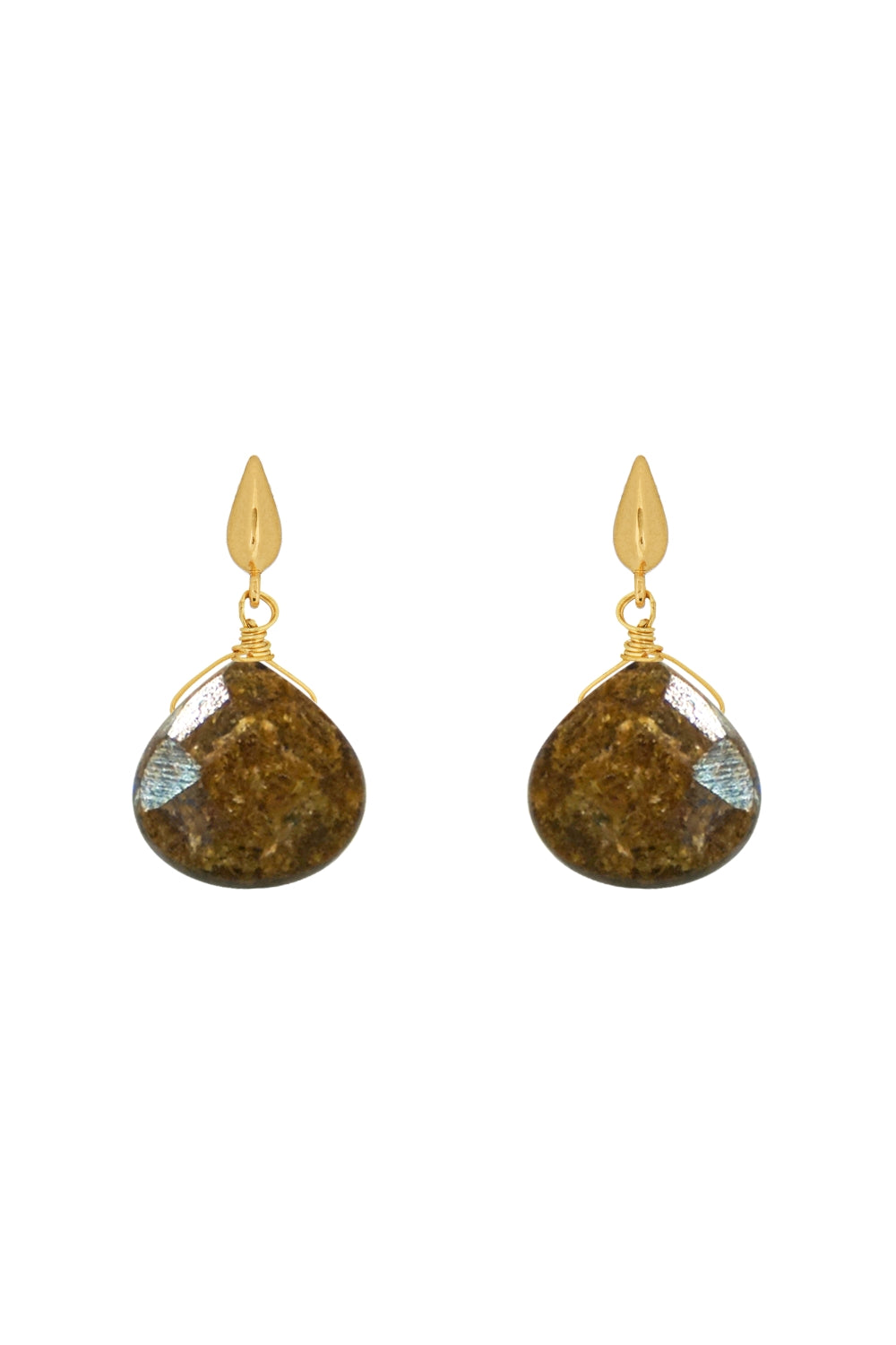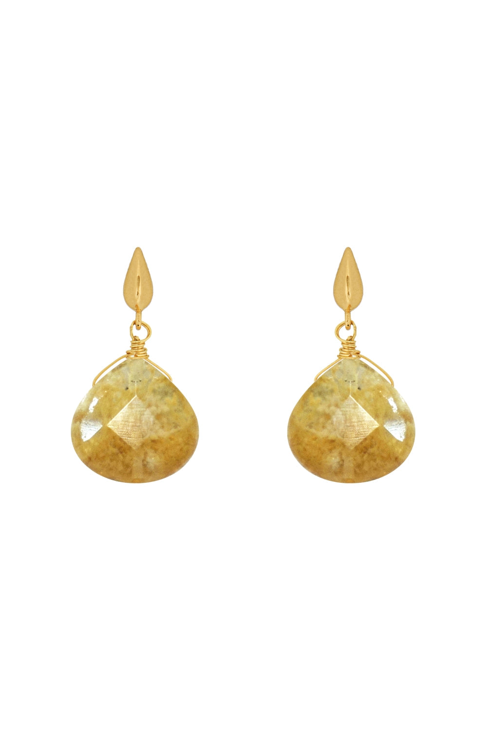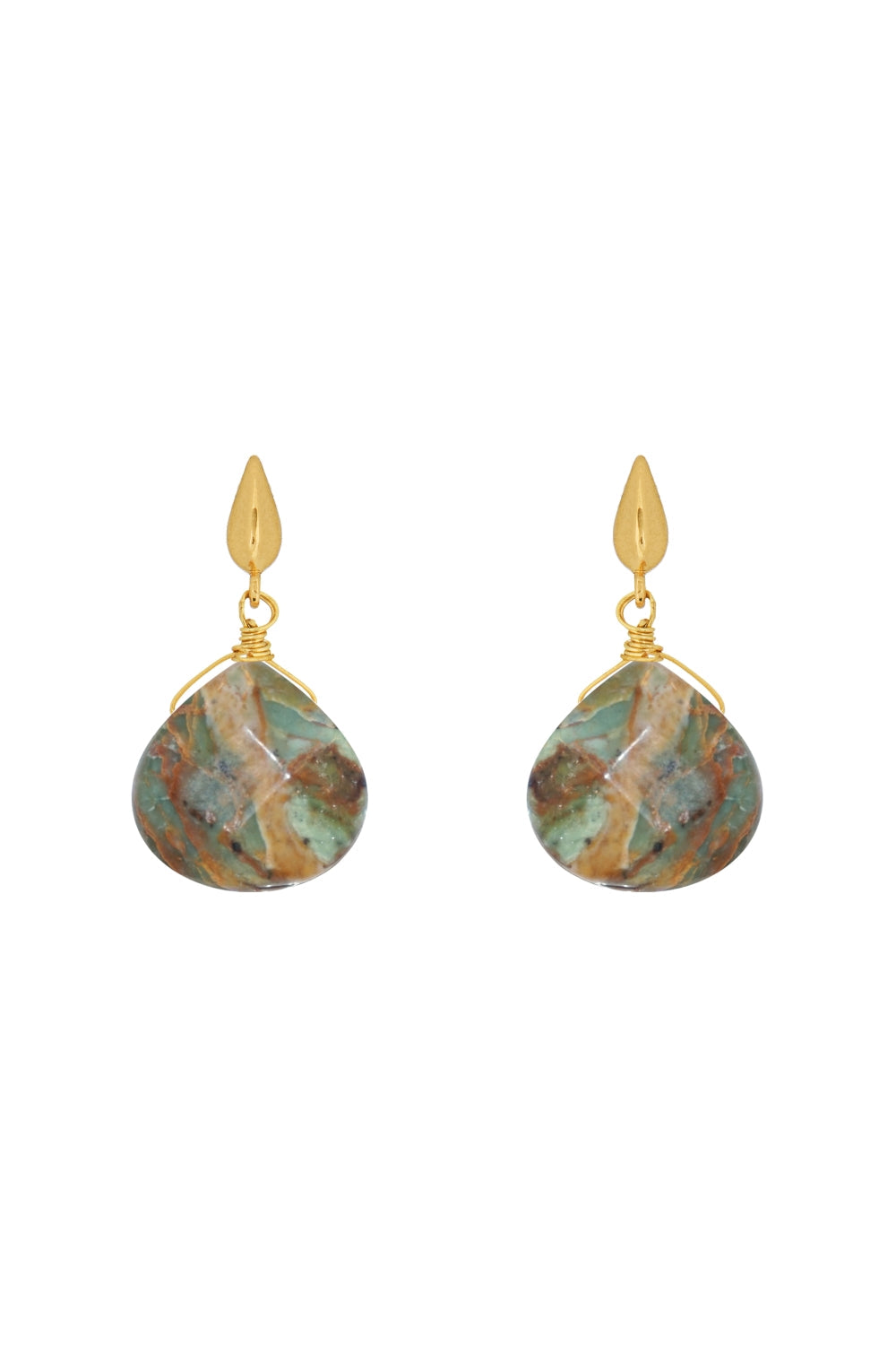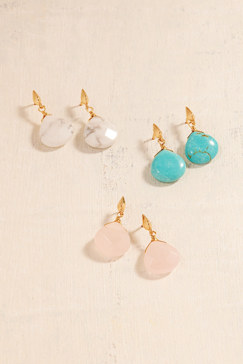18K Gold Plated Brass Teardrop Stone Post Earrings