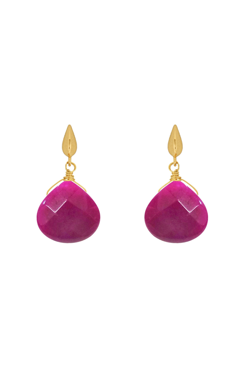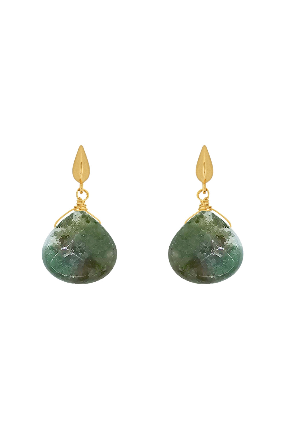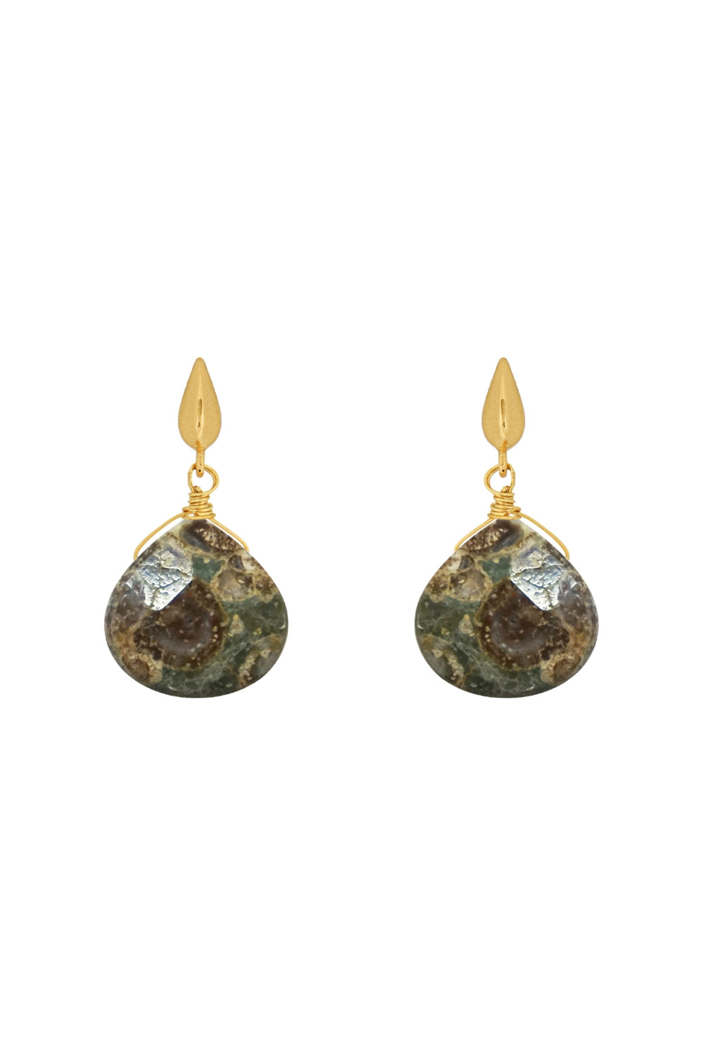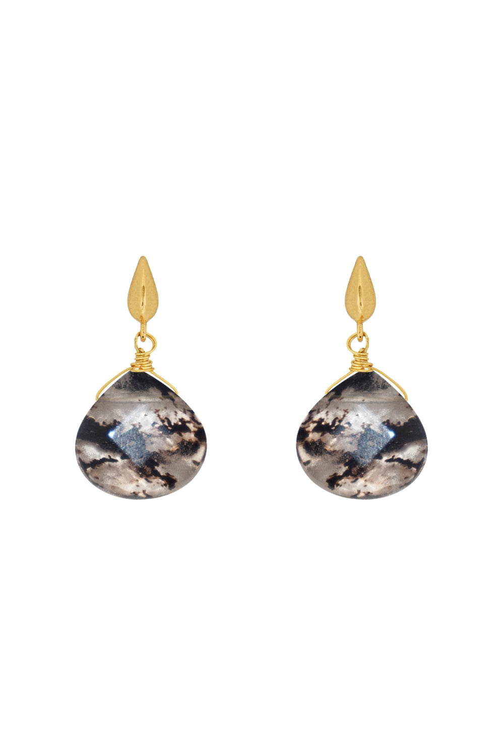 18K Gold Plated Brass Teardrop Stone Post Earrings