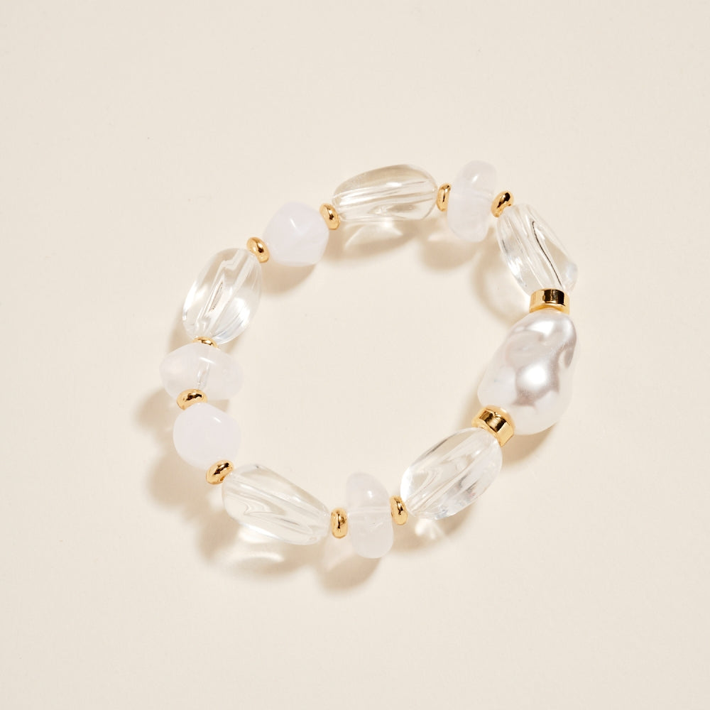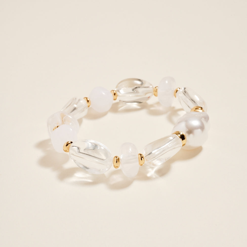 7.25 Inch Chunky Clear Bead Pearl Stretch Bracelet
