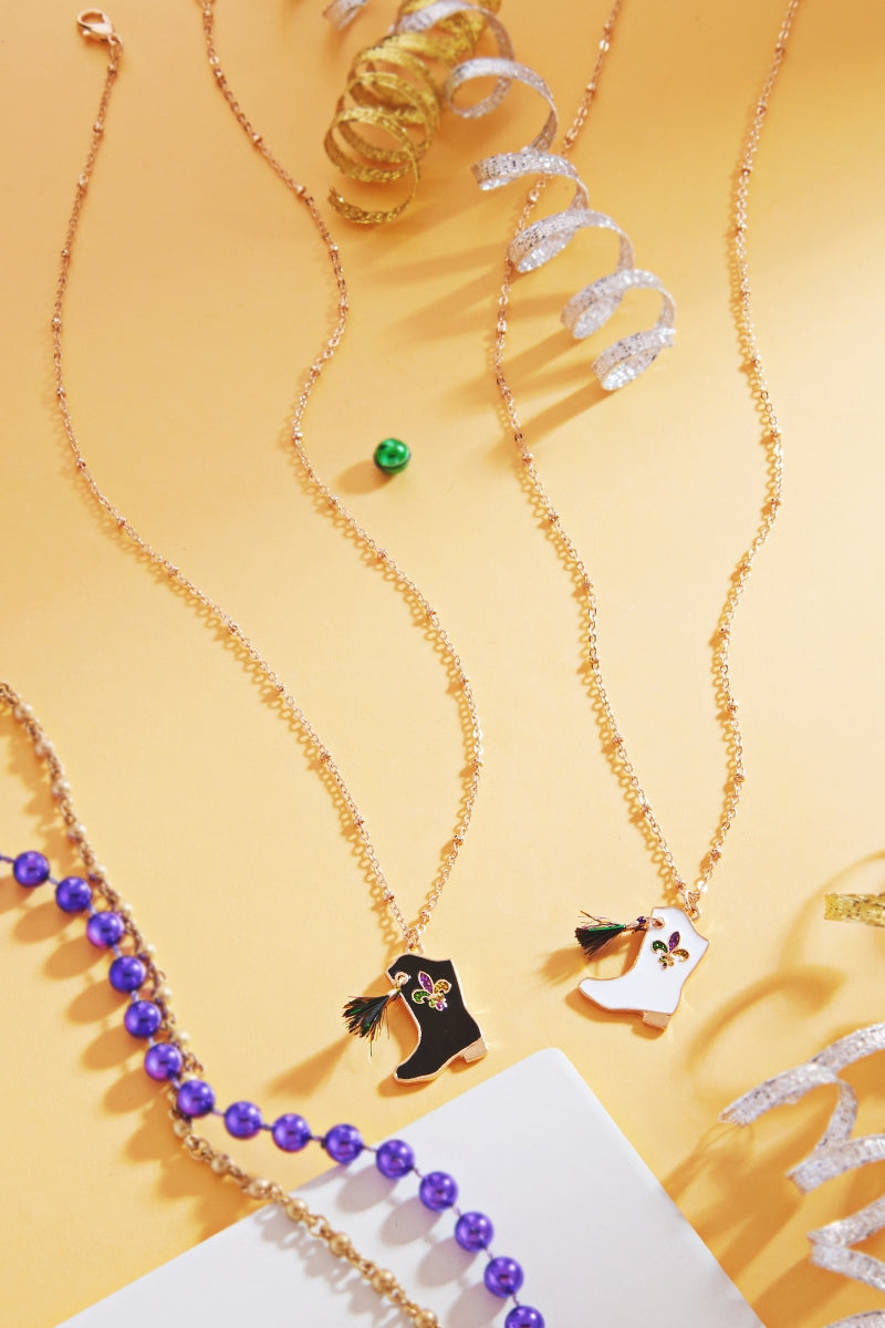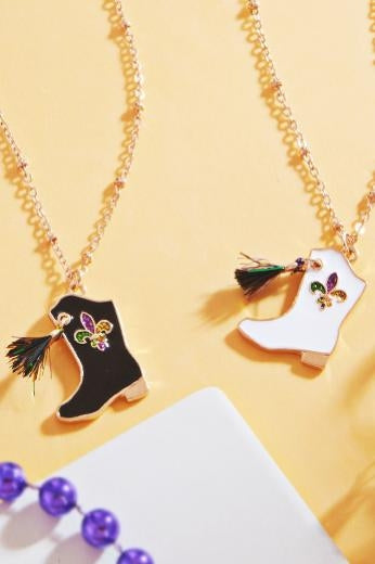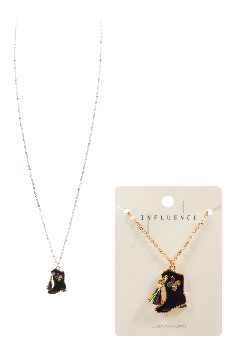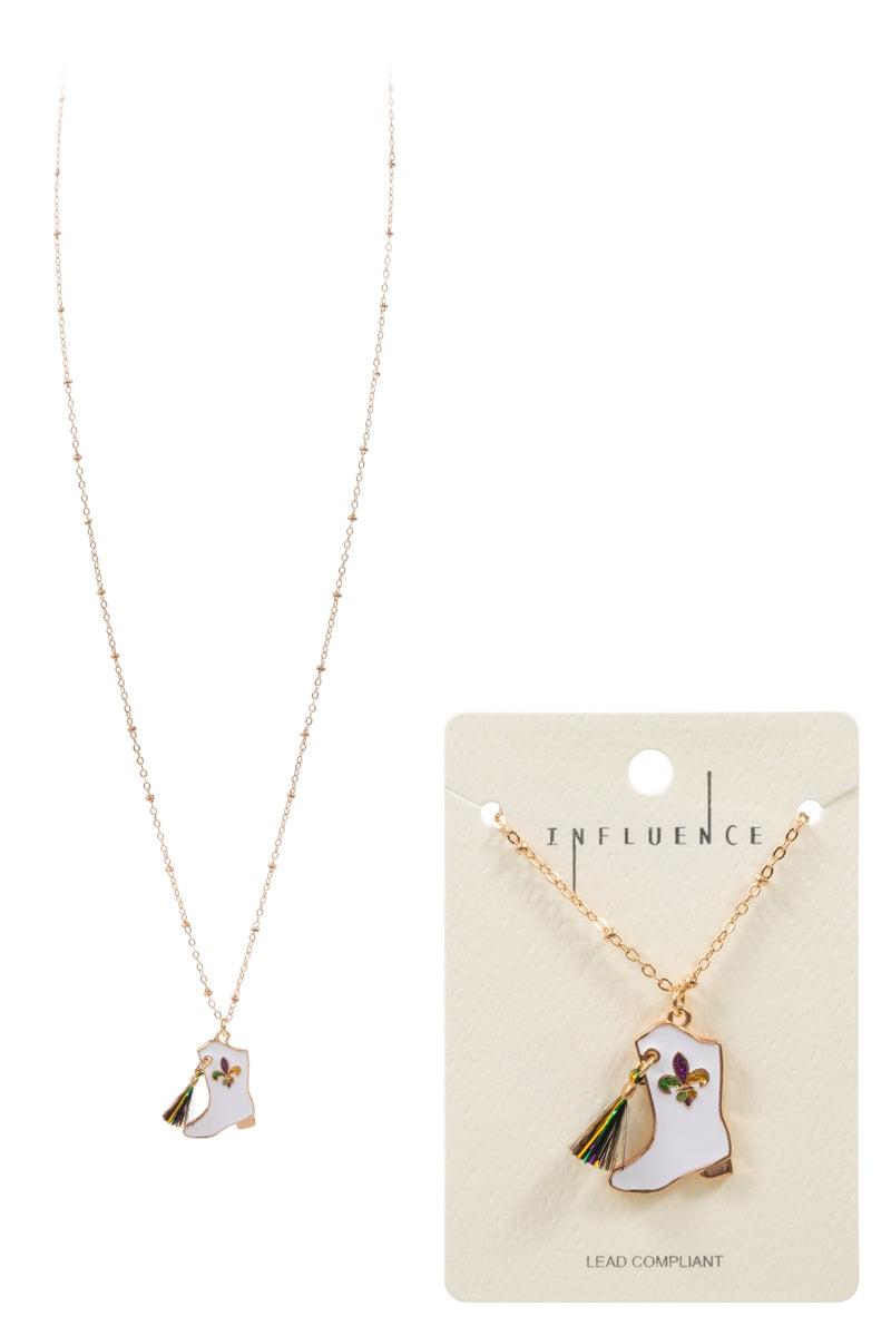 Boot Shaped Mardi Gras Long Nekclace