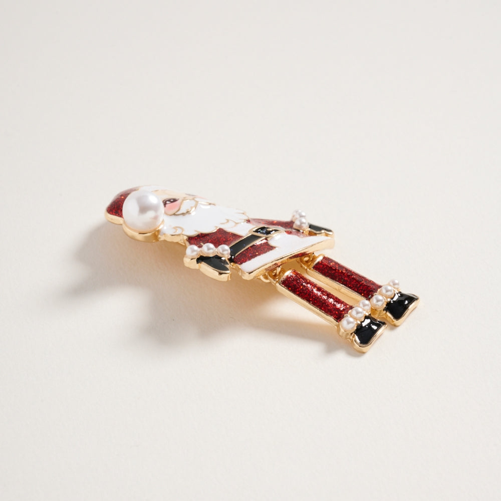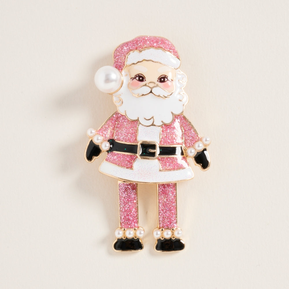 A merry blend of sparkle and sophistication, this brooch features Santa Claus in glitter detail, trimmed with luminous pearls.