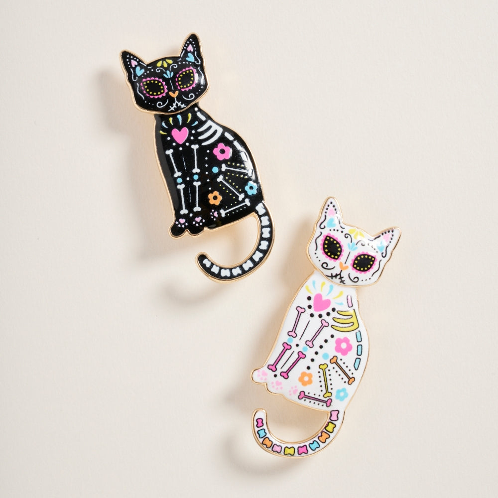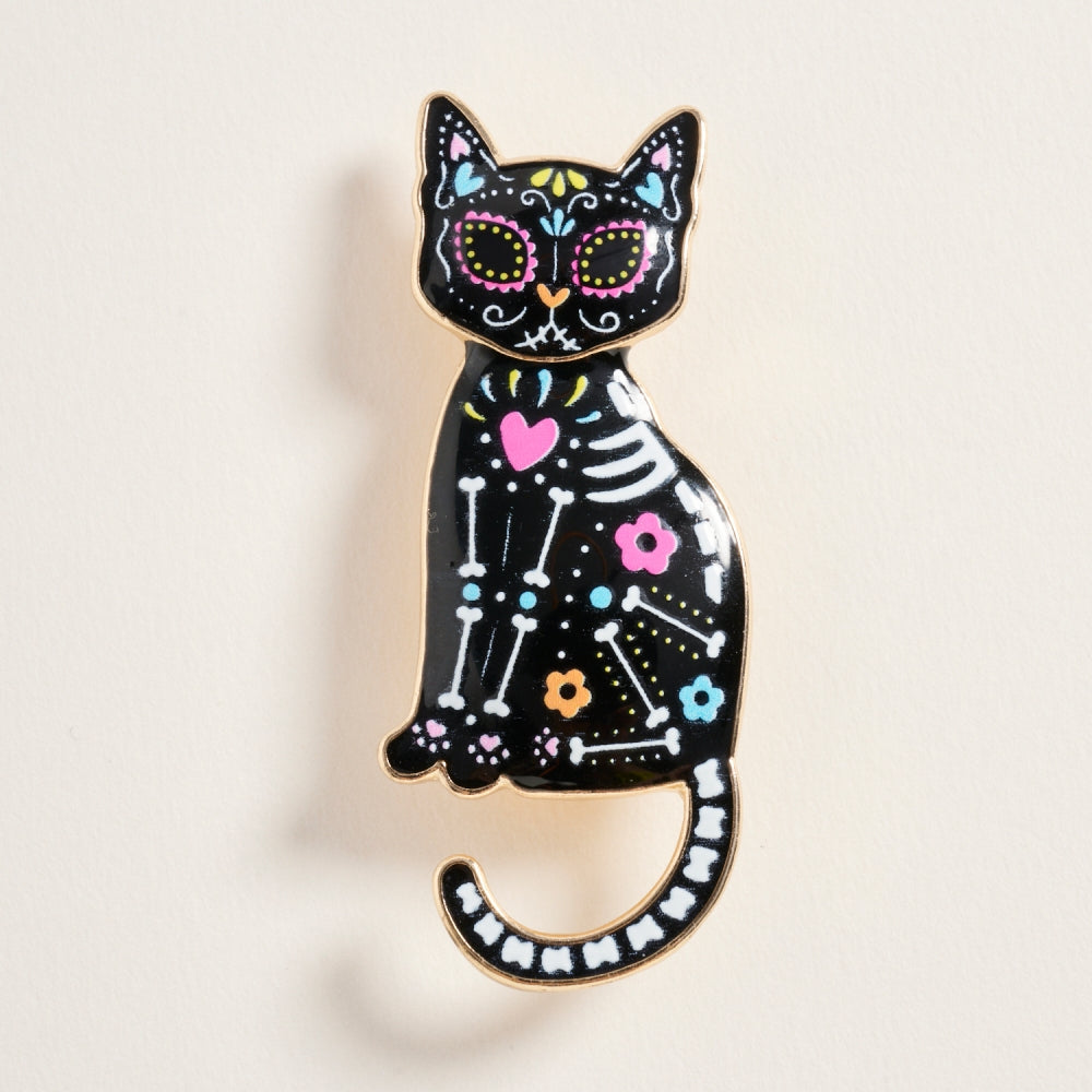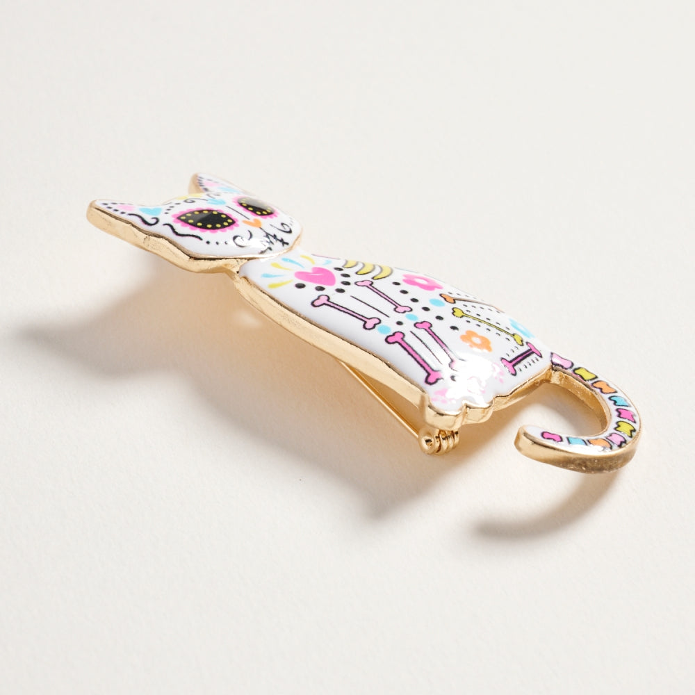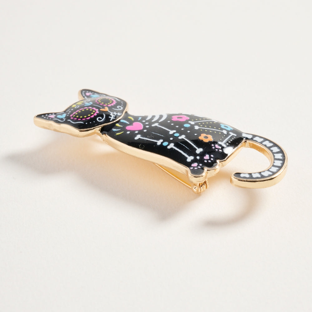 Day of the Dead Cat Halloween Brooch Pin Jewelry