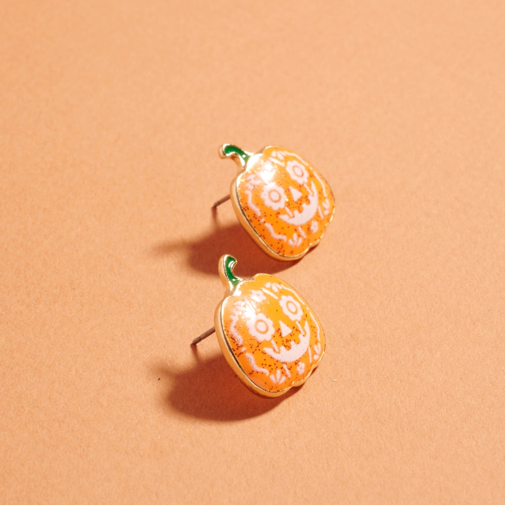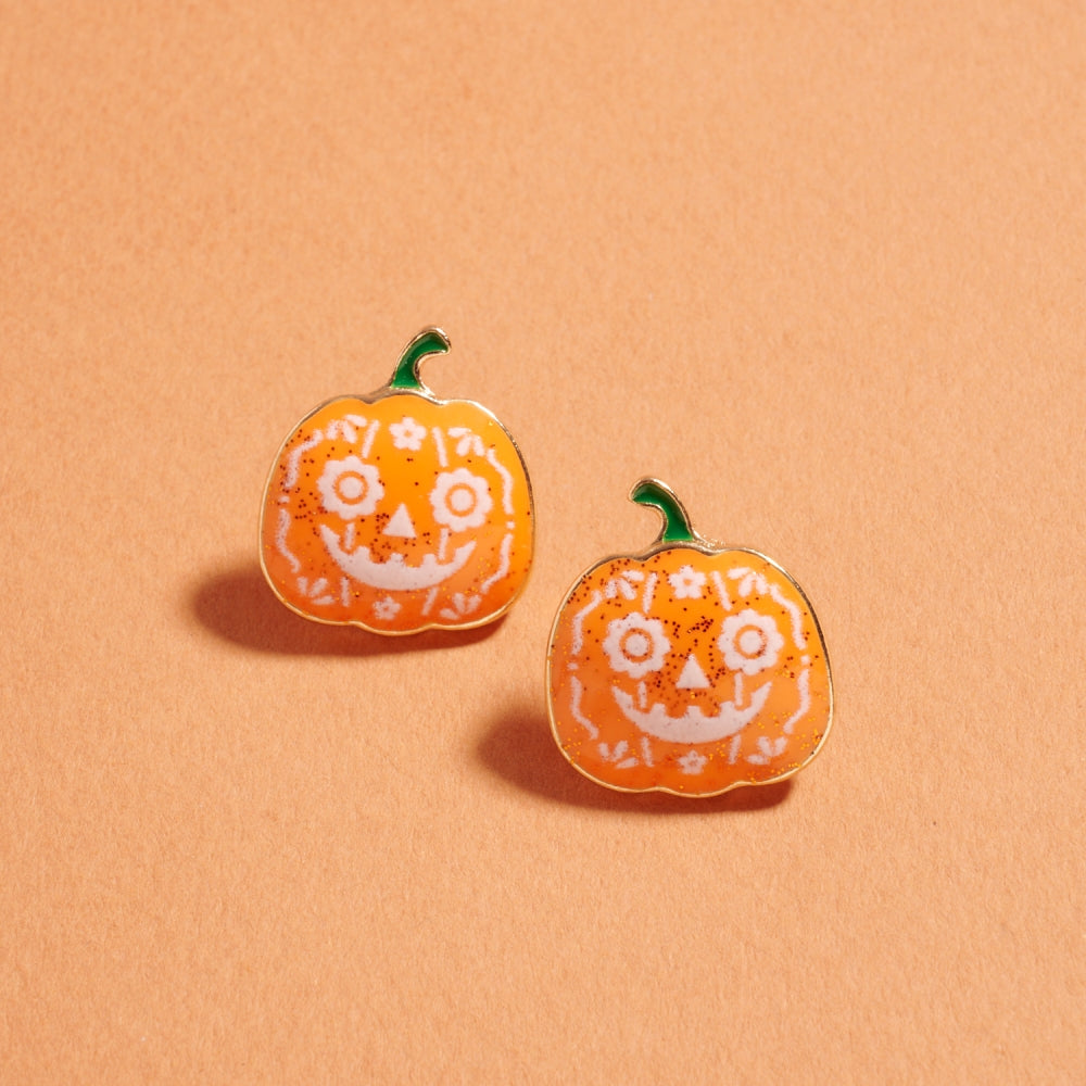 Celebrate the season with these Day of the Dead pumpkin earrings. Featuring a festive patterned design and classic post style, they are a fun and colorful way to add personality to your Halloween or fall look.