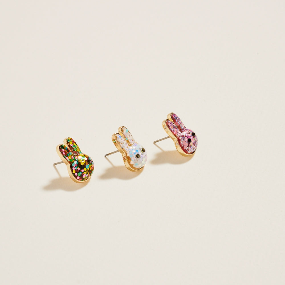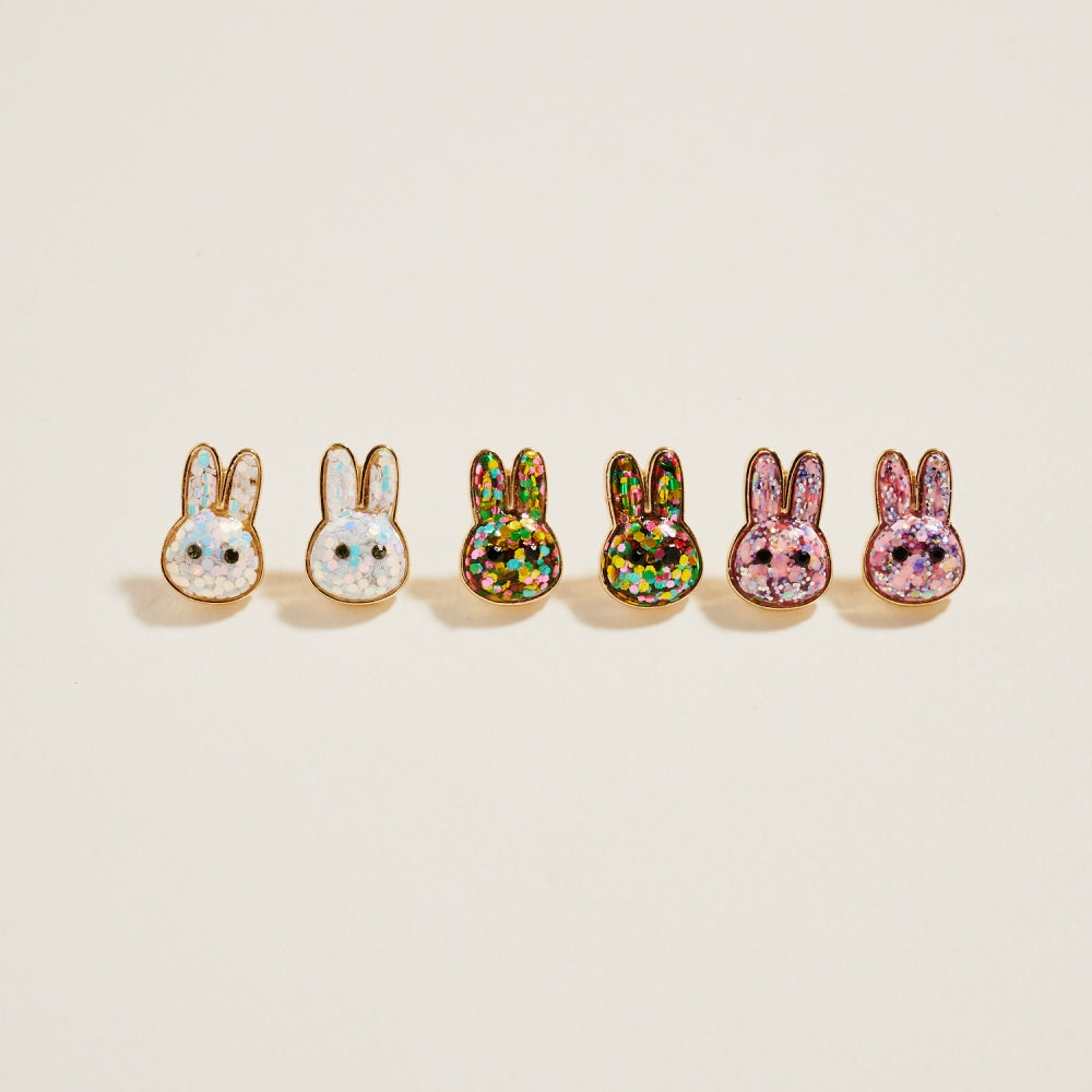 Easter Glitter Bunny Faces 3Pair Set Post Earrings