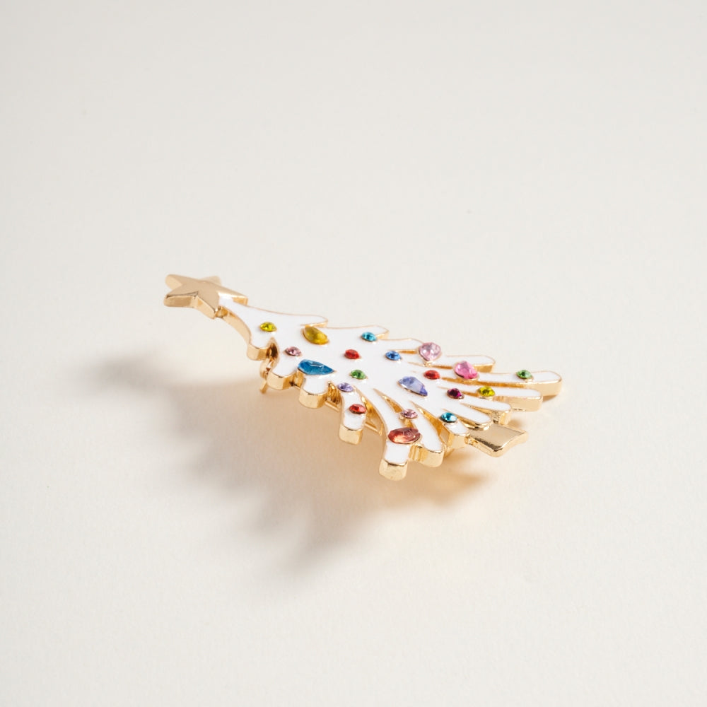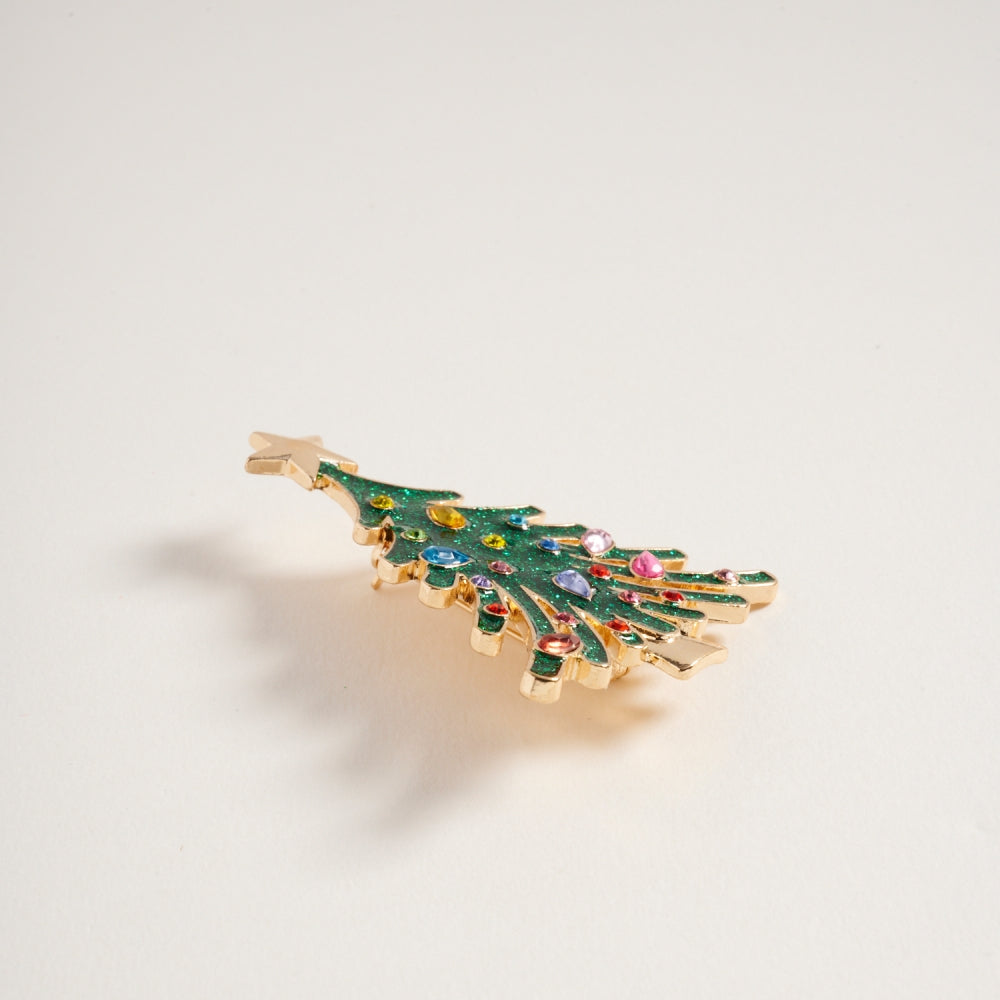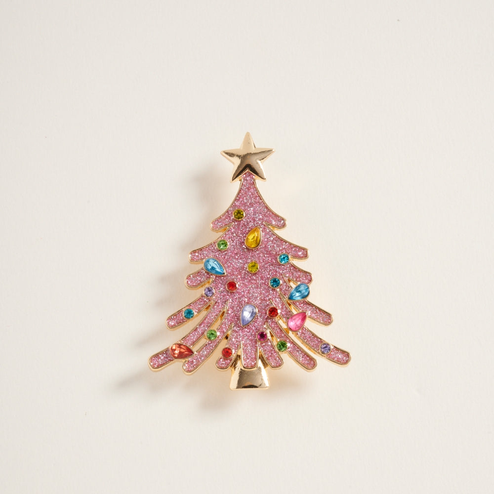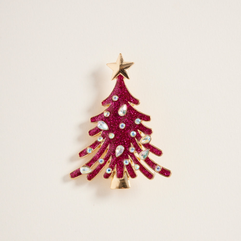 Shine bright this season with a sparkling Christmas tree brooch, detailed with shimmering glitter and rhinestone accents for a festive finish.