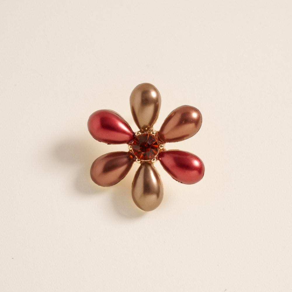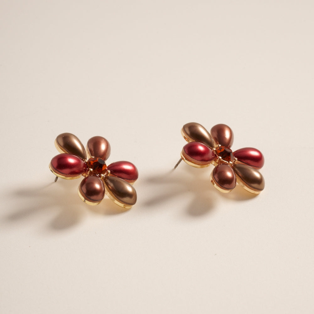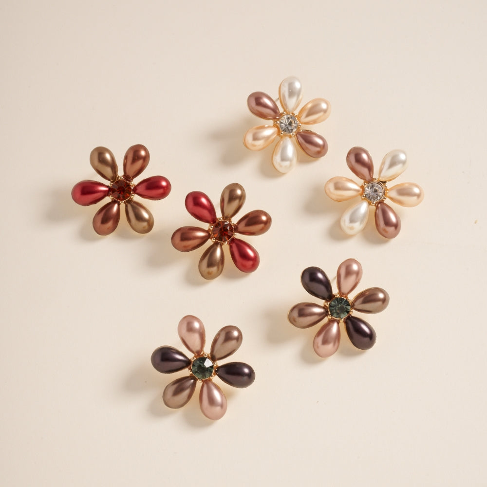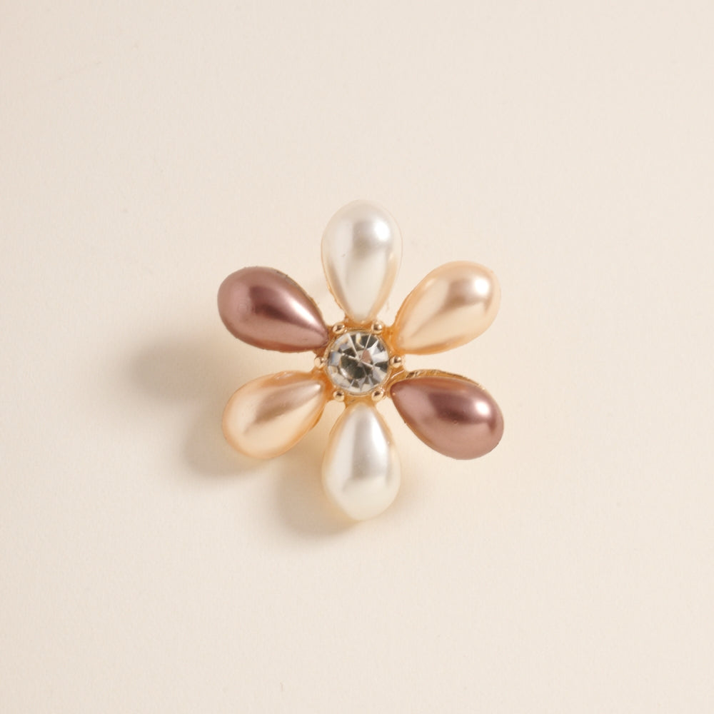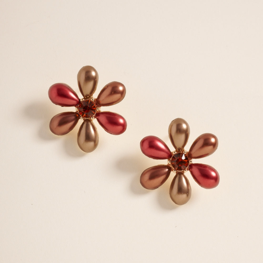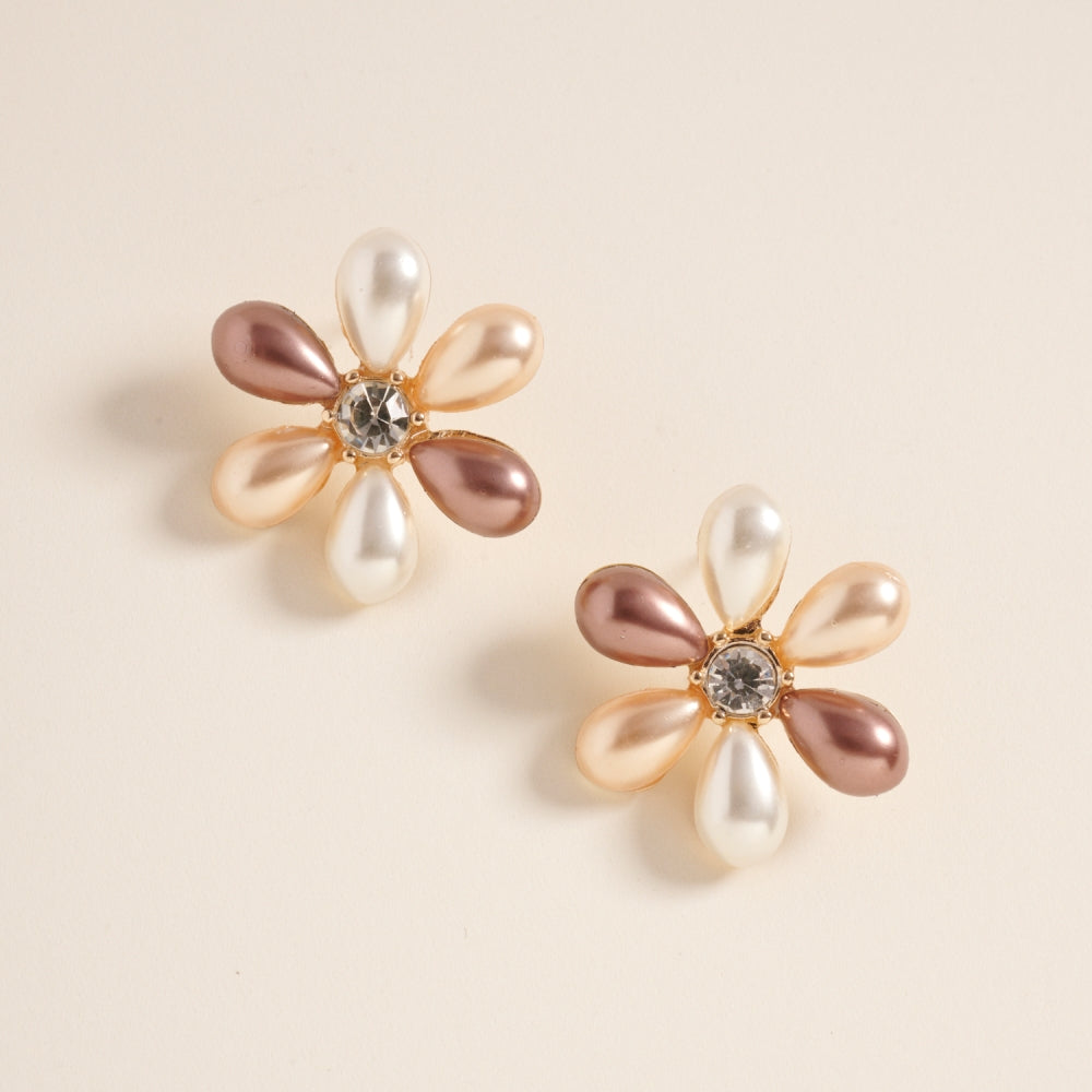 Gradient Pearl Flower w Rhinestone Post Earrings