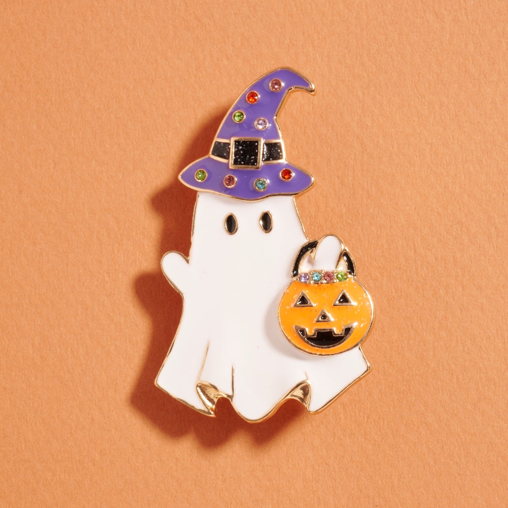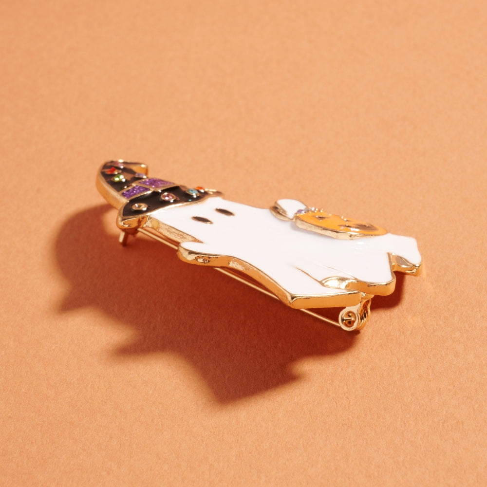 Halloween Ghost with Witch Hat Enamel Brooch Pin