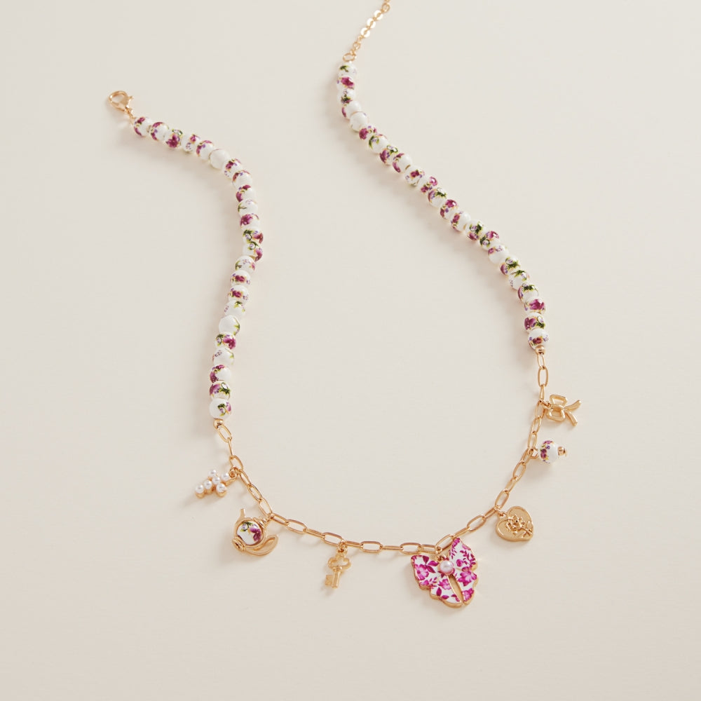 Mixed Shaped Charm W Ceramic Bead Short Necklace