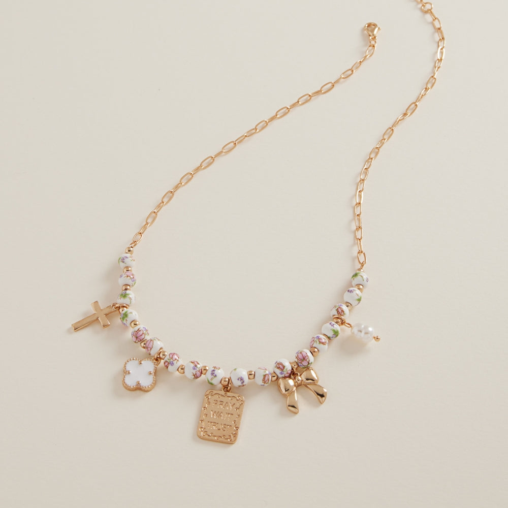 Mixed Shaped Metal Charms Ceramic Beads Necklace
