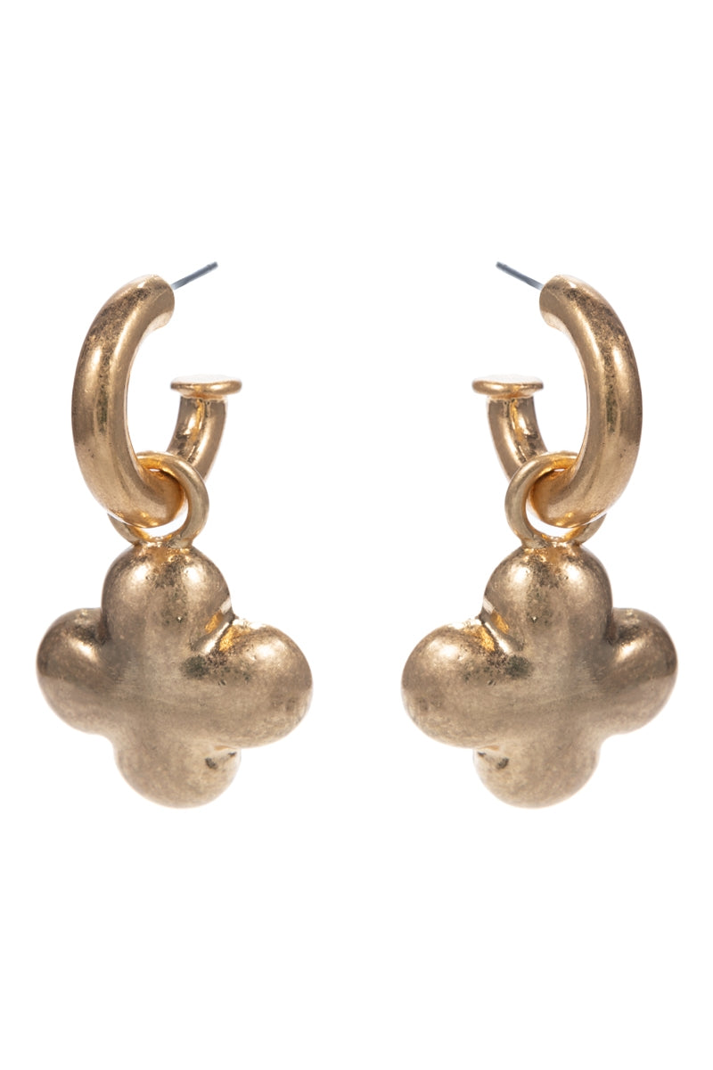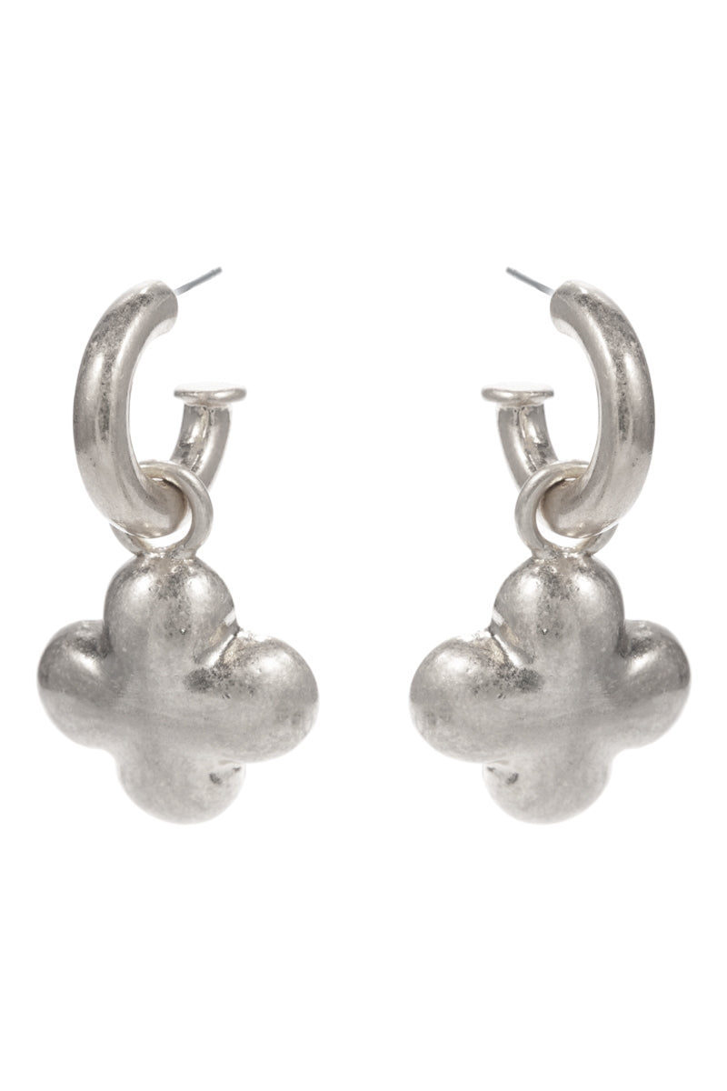 Quatrefoil Domed Metal Titanium Post Pin Hoop Earrings