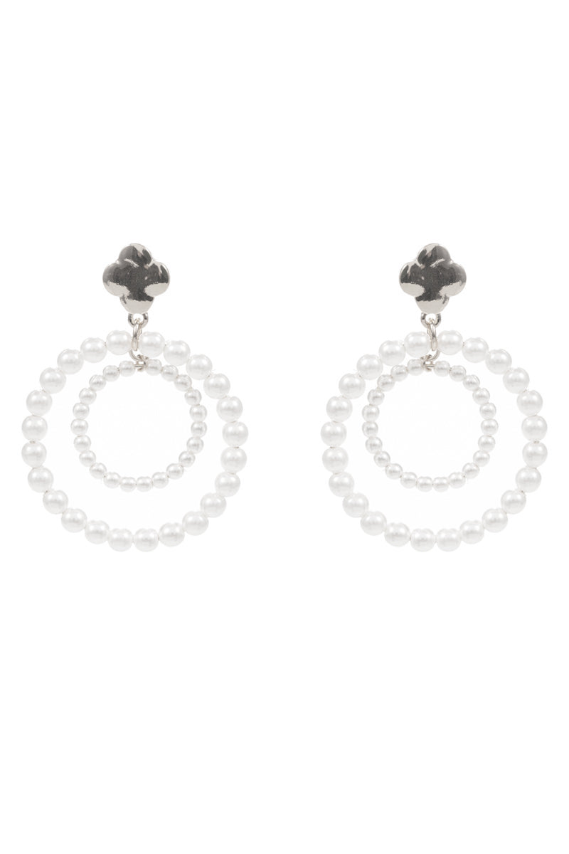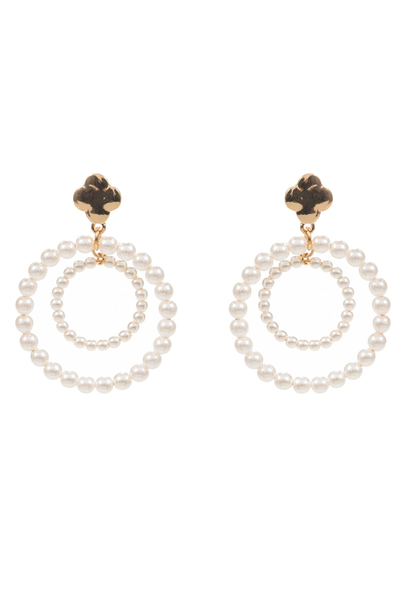 Expertly crafted with a unique Quatrefoil shape, these 2.25 inch pearl post earrings add elegance and charm to any outfit. The lustrous pearls shine beautifully, making them the perfect accessory for any occasion.