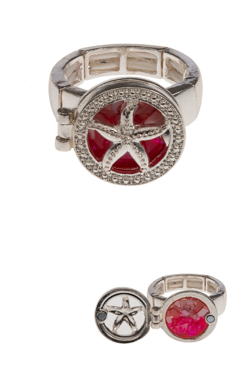 Starfish Shaped Chipped Shell Locket Stretch Ring