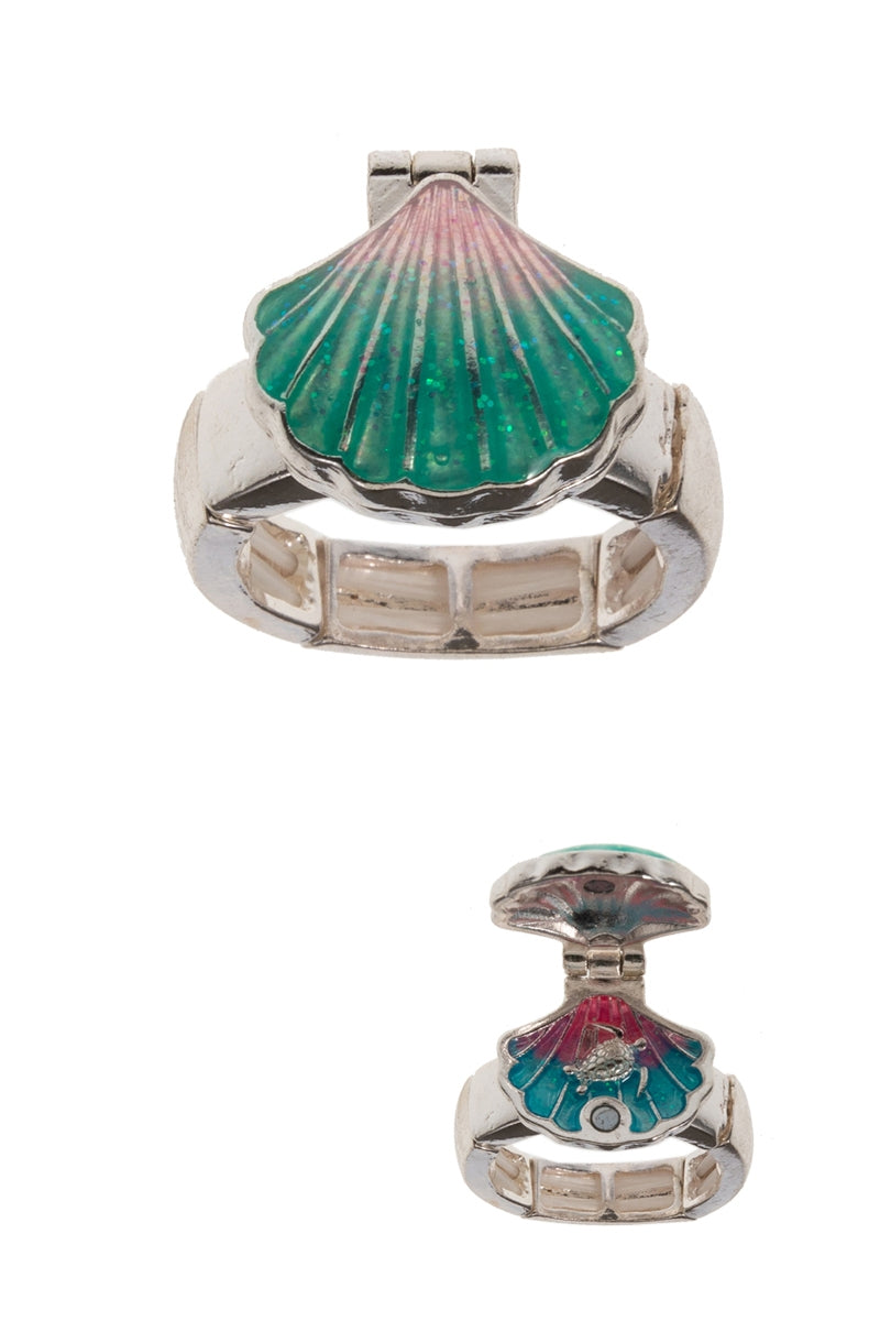 Summer Shell Shaped Enameled Locket Stretch Ring