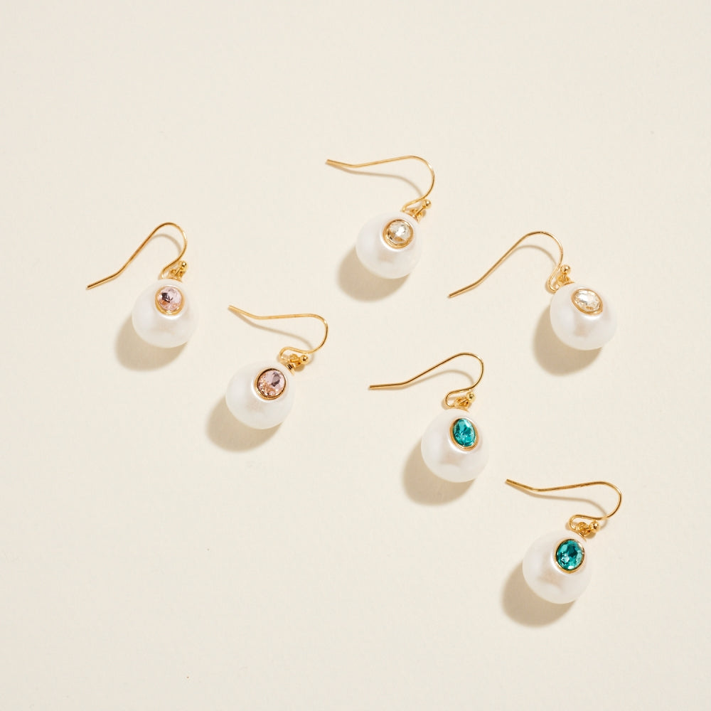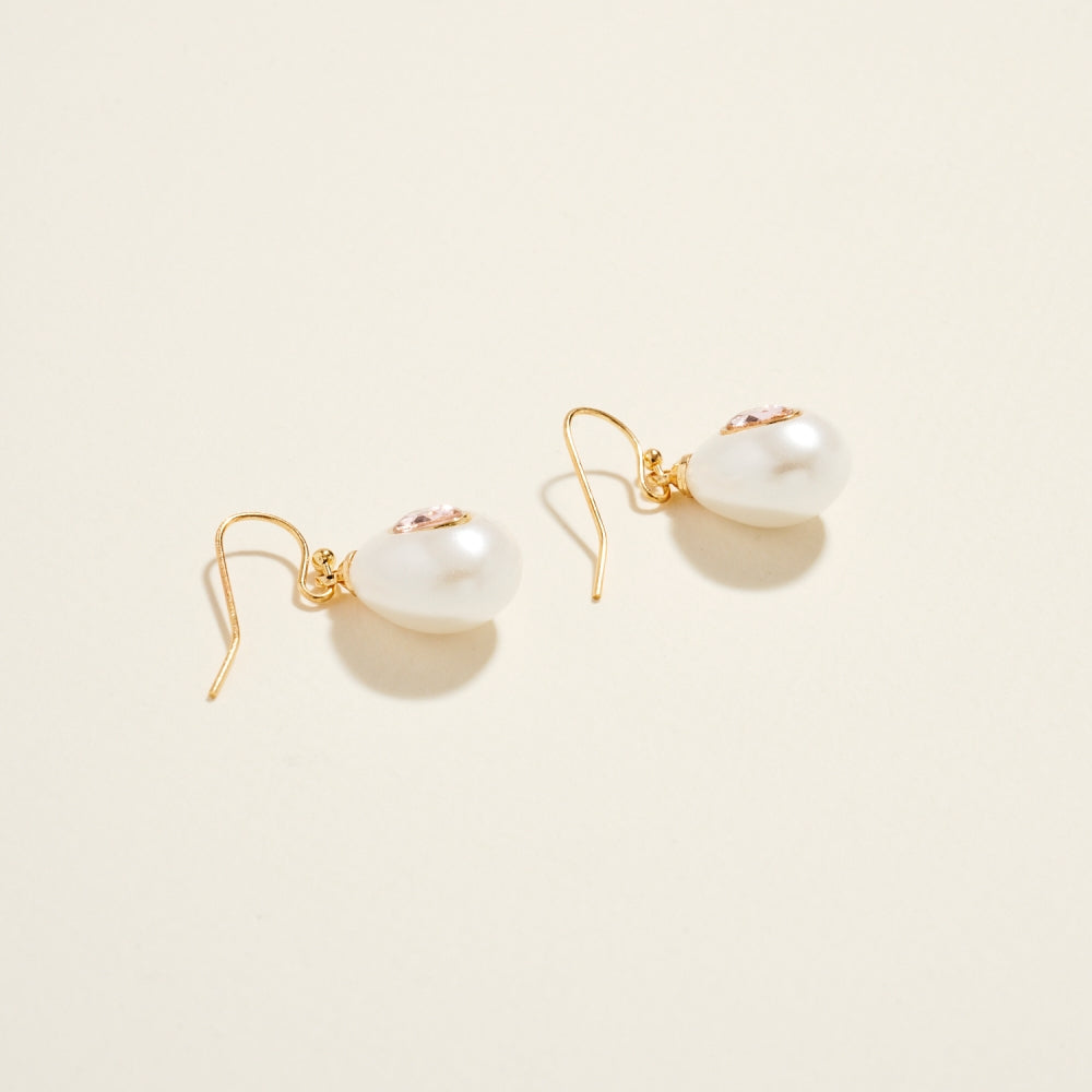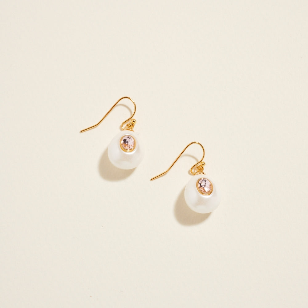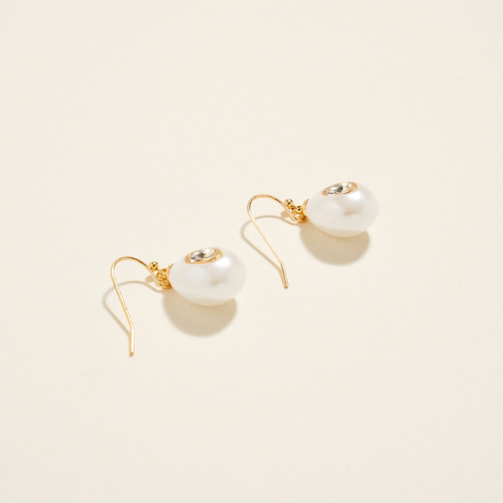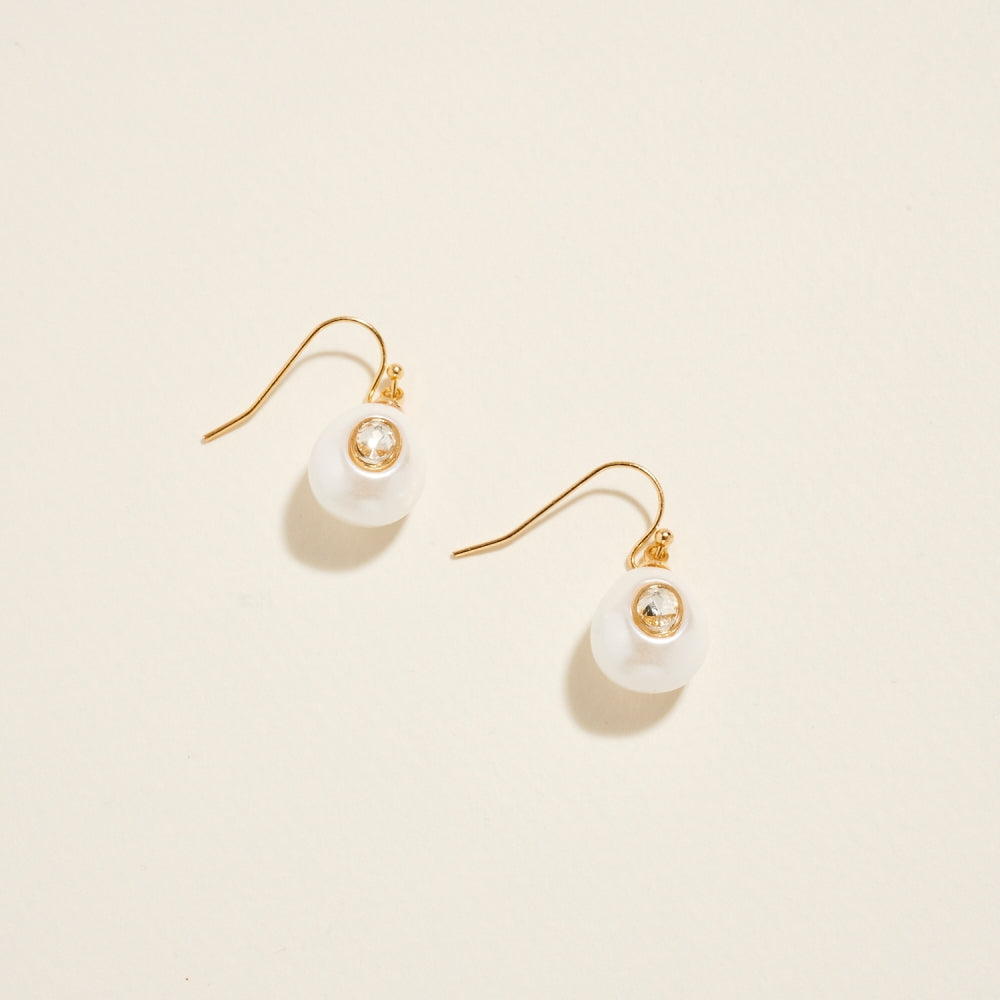 A smooth teardrop pearl creates a graceful silhouette, accented by a single rhinestone at the center for added shine. The hook design offers light movement and an easy, comfortable fit. A timeless style with a touch of sparkle.